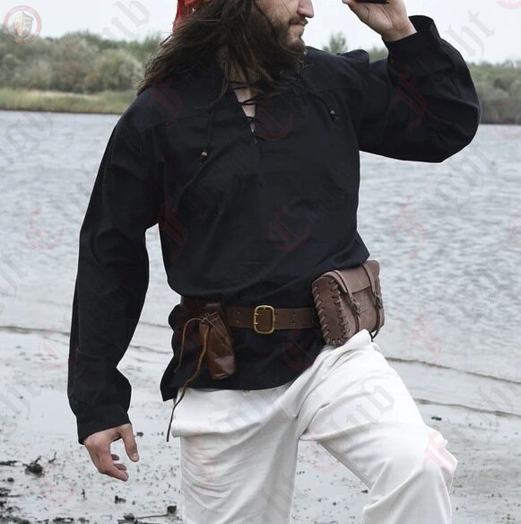 Channel dark elegance and medieval intrigue with our Black Gothic Pirate-Style Shirt. Featuring a lace-up neckline and buttoned cuffs, this shirt evokes the dramatic style of shadowy corsairs and roguish nobles of old. Crafted from soft, durable fabric, it drapes comfortably while maintaining a striking, timeless silhouette.