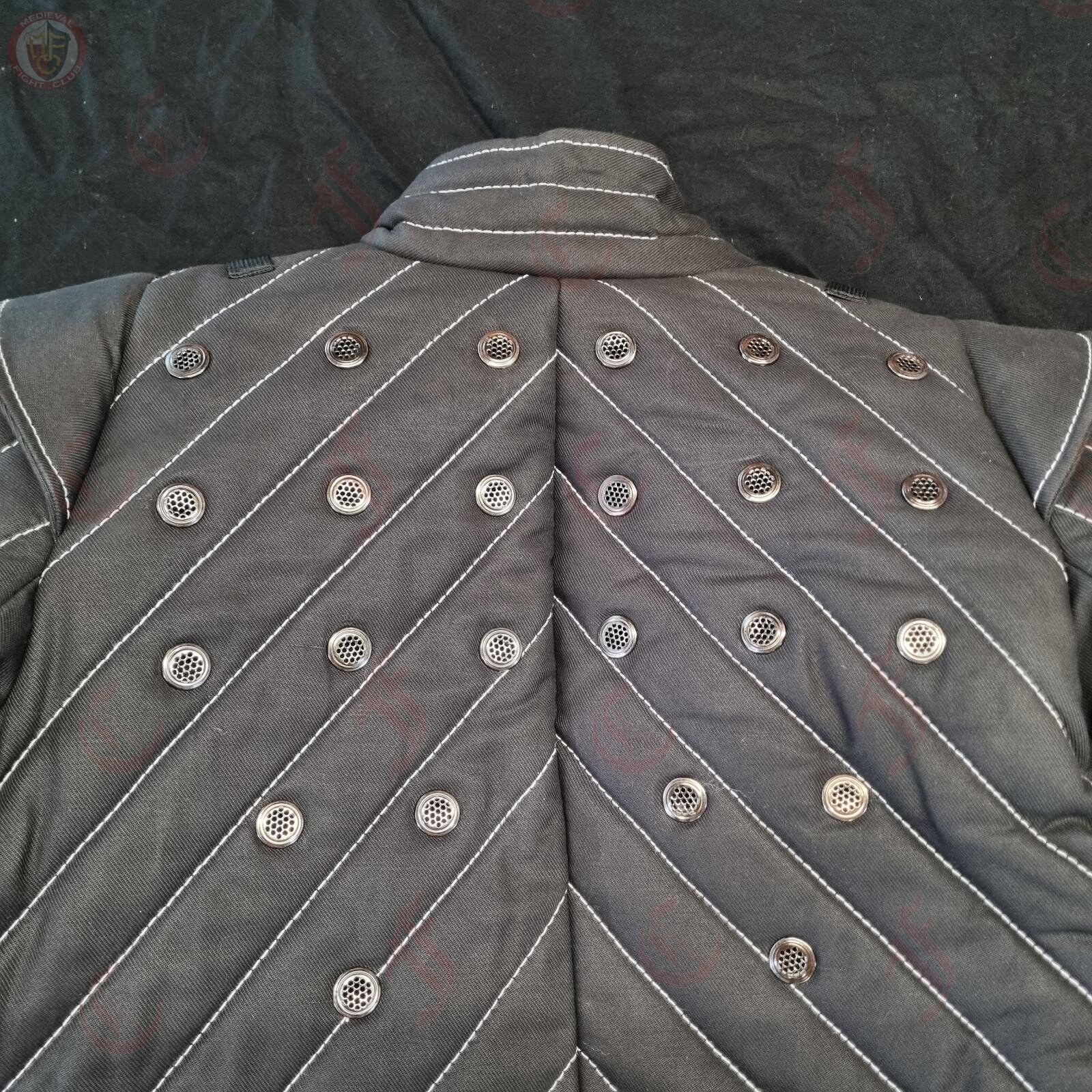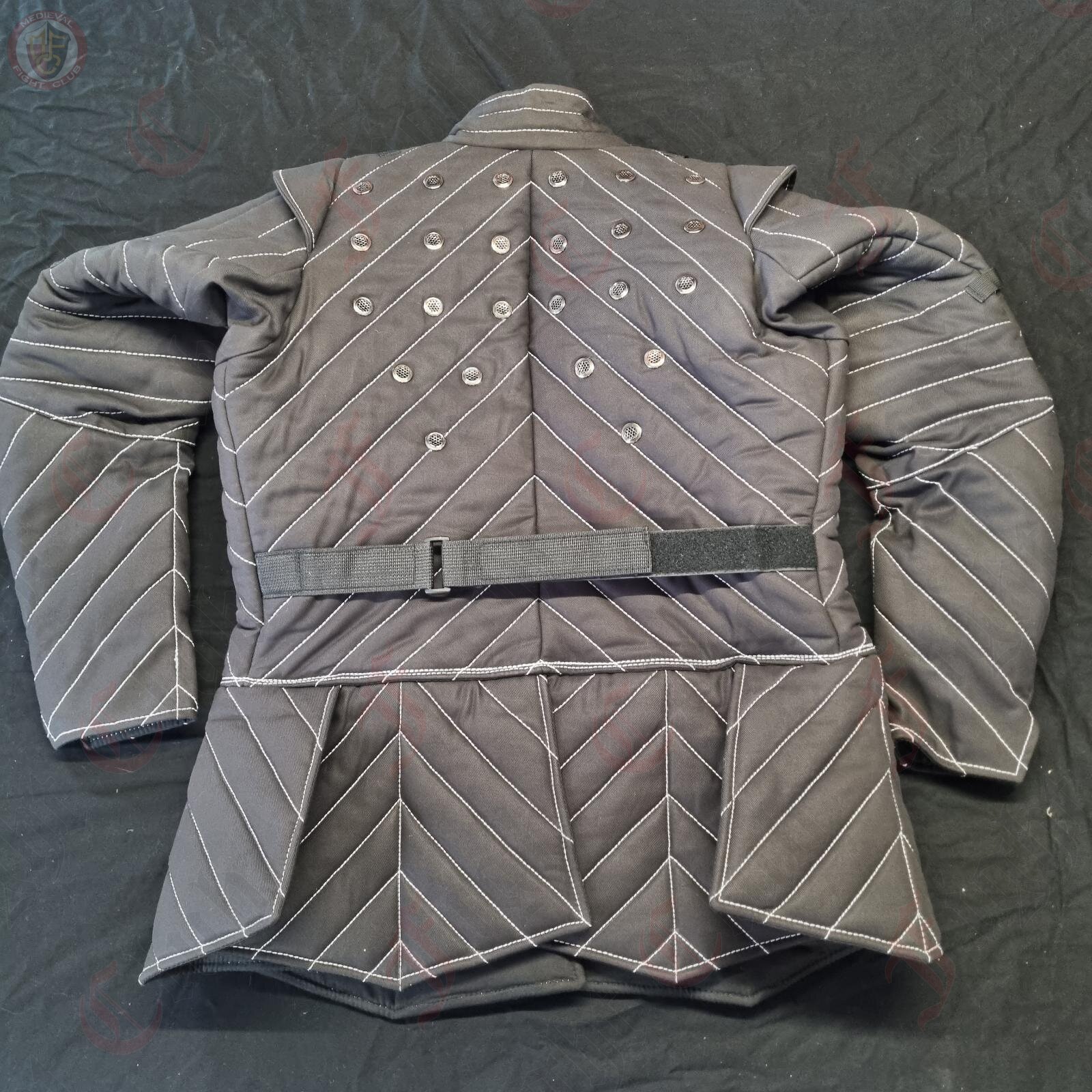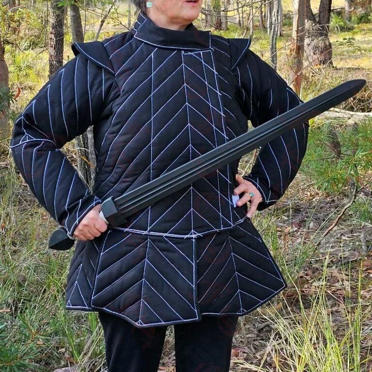 The jacket is designed to emulate a typical footsoldier's gambeson from the 16thC.
