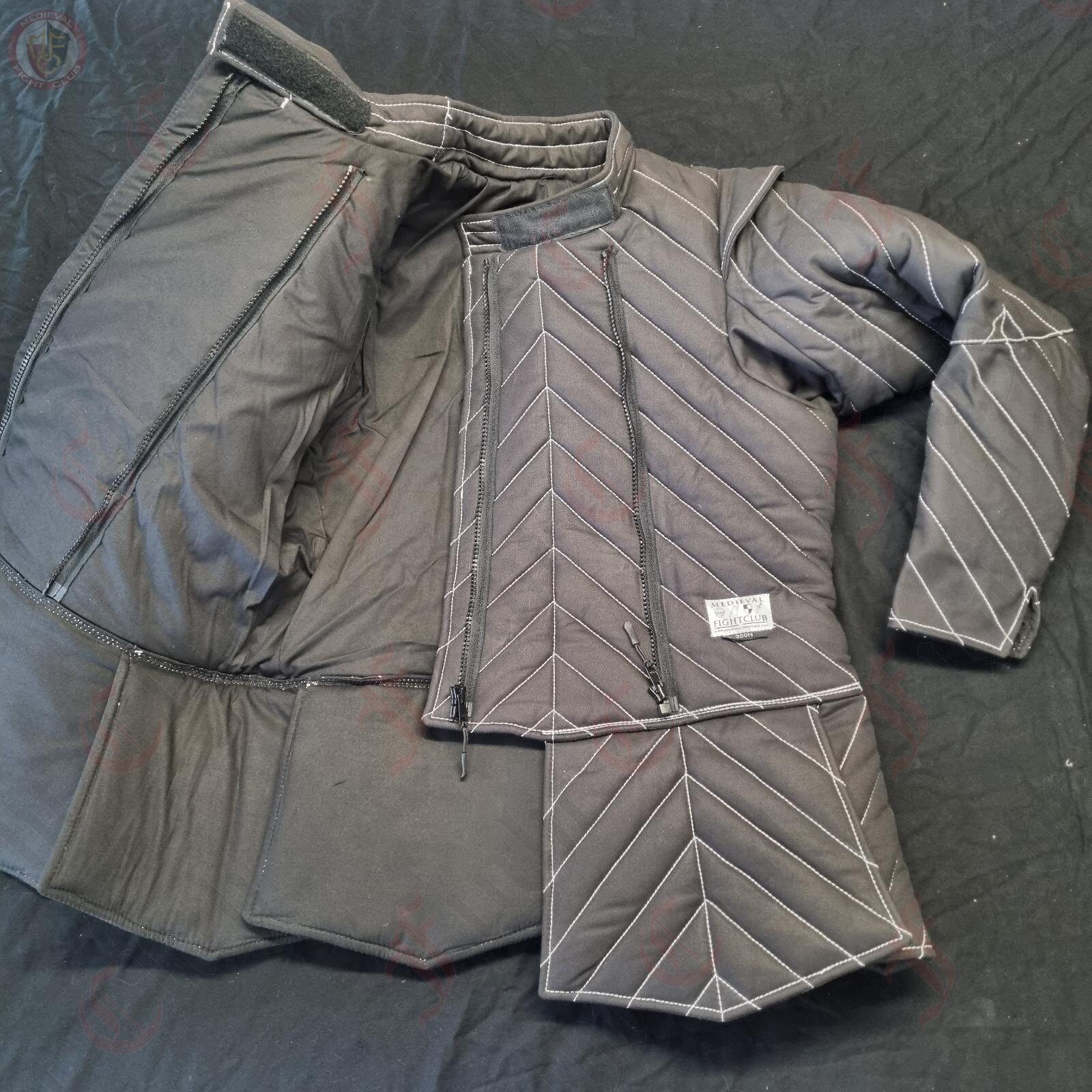 Top of the line performance demands top of the line protection. Tested to withstand 350 N of force, this HEMA combat jacket is perfect body armour for a HEMA duellist. Featuring thick padded protection for the chest, back, arms, neck and pelvis, this jacket will keep you protected without restricting your movement.