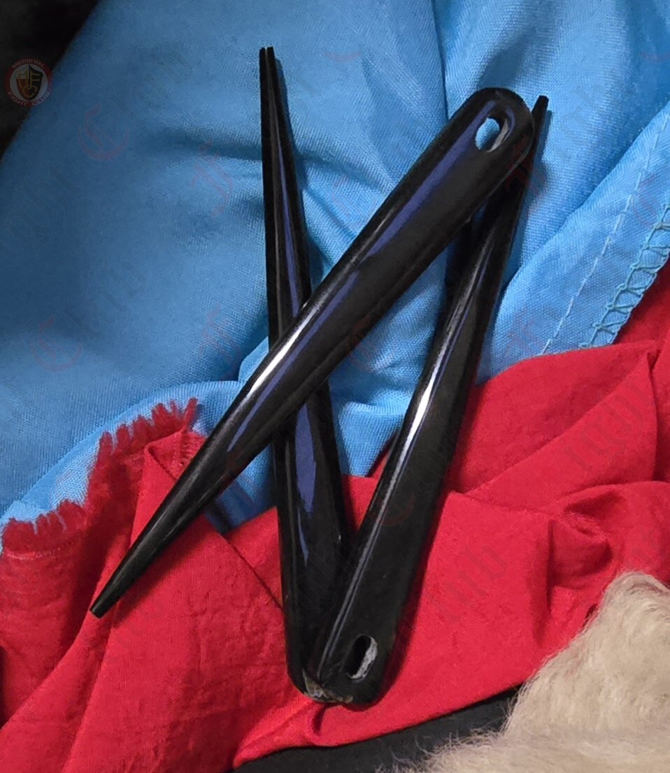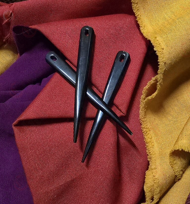 Add a touch of authentic flair to your early medieval costume with this striking, hand-carved horn needle. Perfect as a decorative piece or functional accessory, it’s a standout detail for any historical reenactor or craft enthusiast.