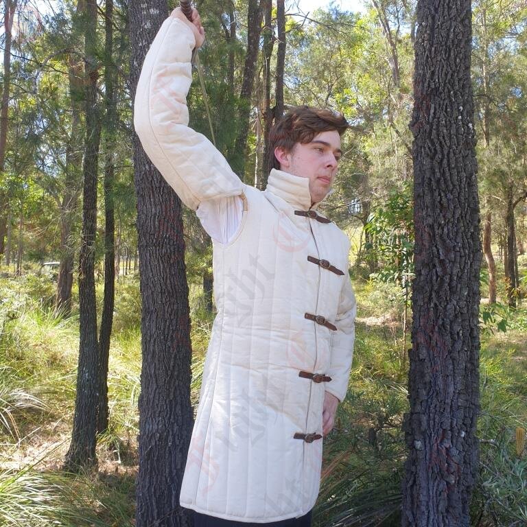 Don't be misguided by claims that heavier gambesons are better. Sure, more padding can equal more protection but more weight doesn't equal more padding. It can simply mean it is larger or longer or more cumbersome. An ideal combat gambeson is a balance between softening a blow and your movement. A gambeson that is overweight can impede your skill and prowess on the battlefield. When in doubt trust only MFC products or contact us for the full story. Our gambesons are not only better designed for re-enactors they are also far better value.