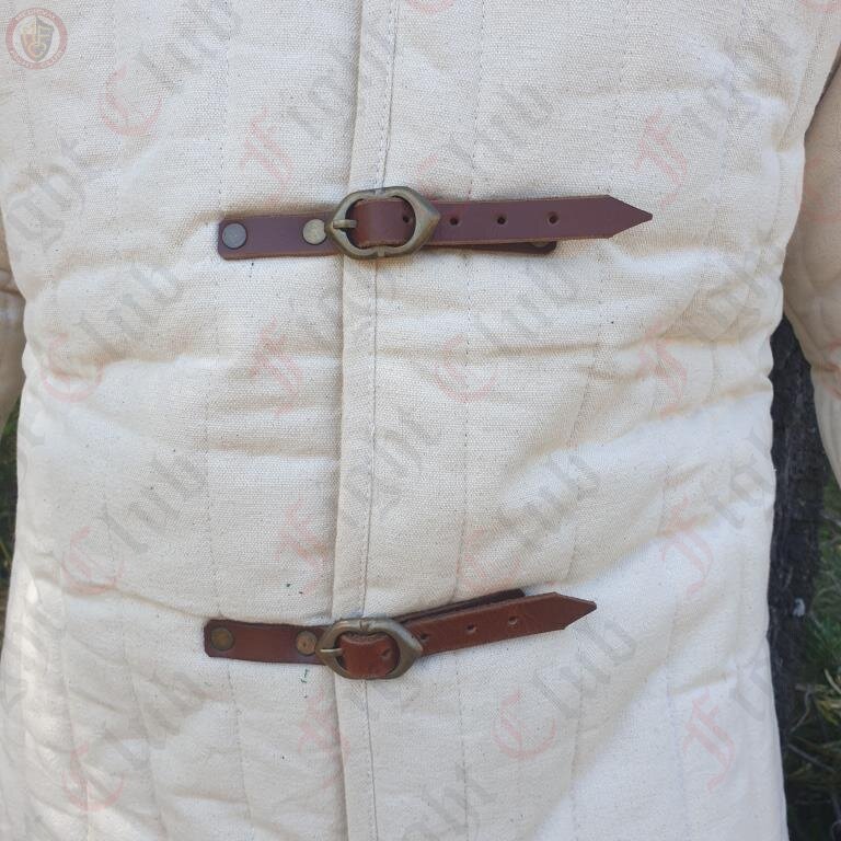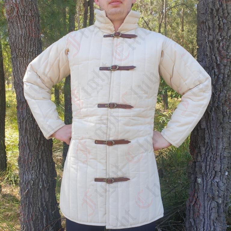 There are two types of gambeson; those designed to be worn beneath armour, and those designed to be worn as independent armour. The latter tend to be thicker and higher in the collar. For common soldiers who could not afford mail or plate armour, the gambeson, combined with a helmet as the only additional protection, remained a common sight on European battlefields during the entire Middle Ages.