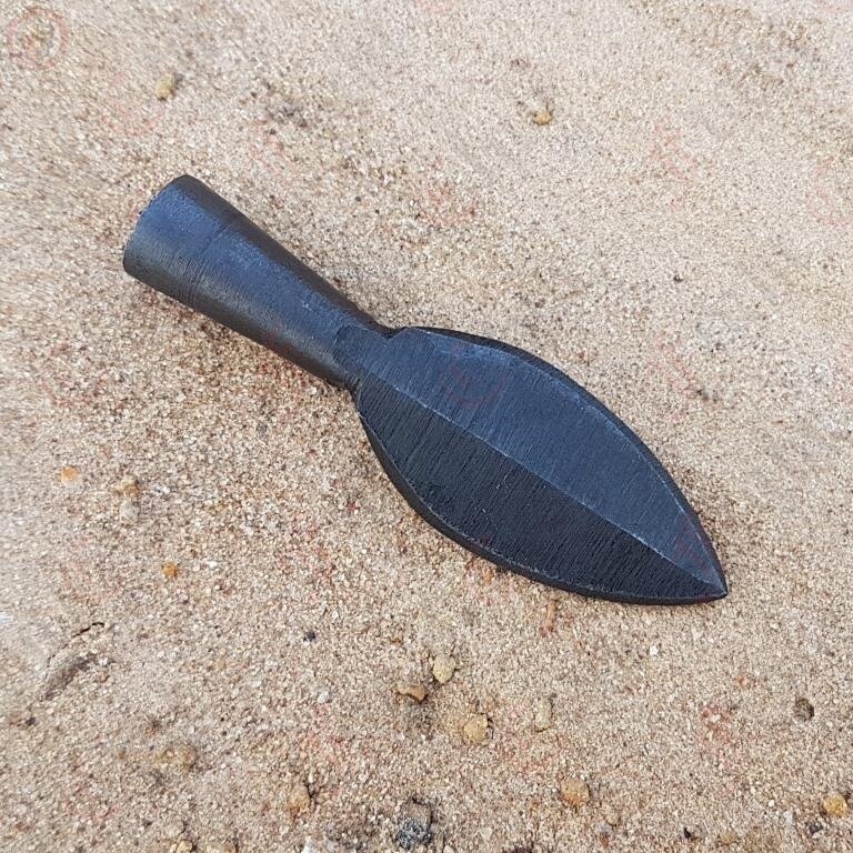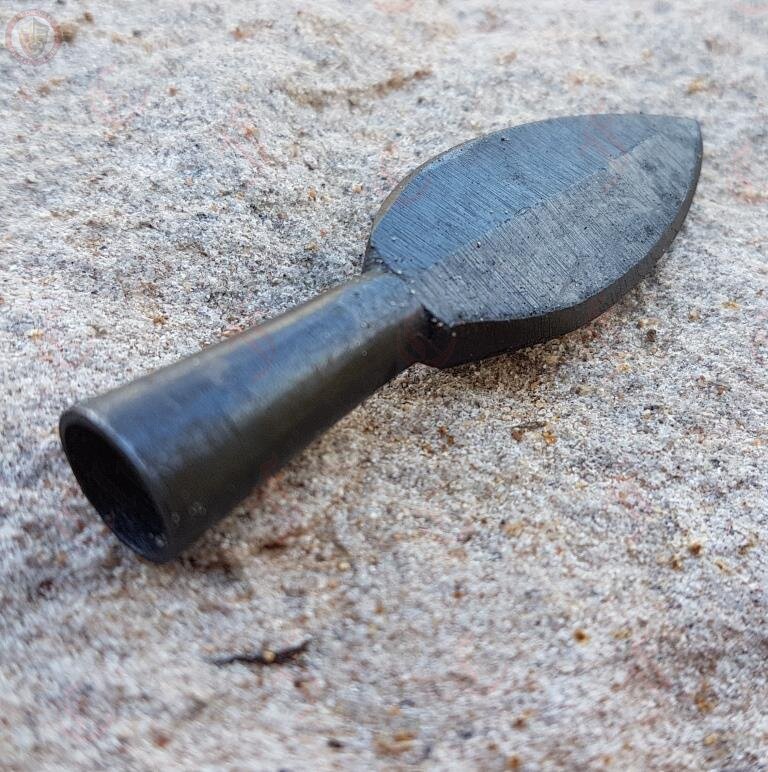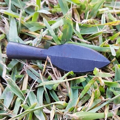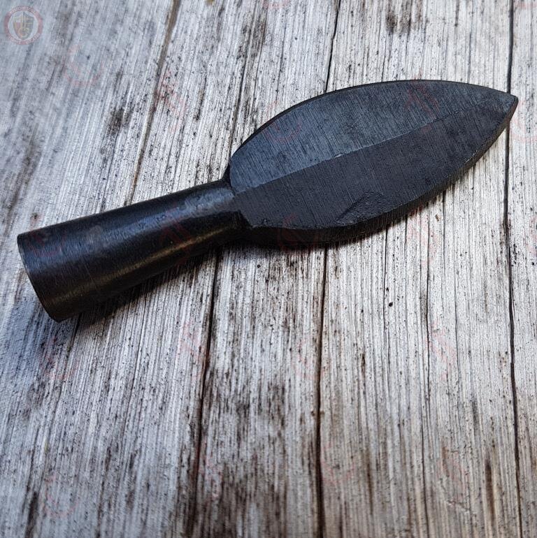 This small handcrafted leaf shaped arrowhead is just waiting to be fletched. It is finished with a forge black appearance.