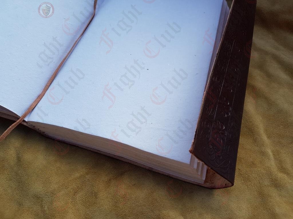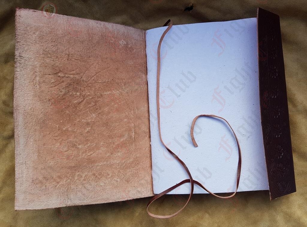 This handmade embossed leather journal contains approx 240 pages of cotton paper.