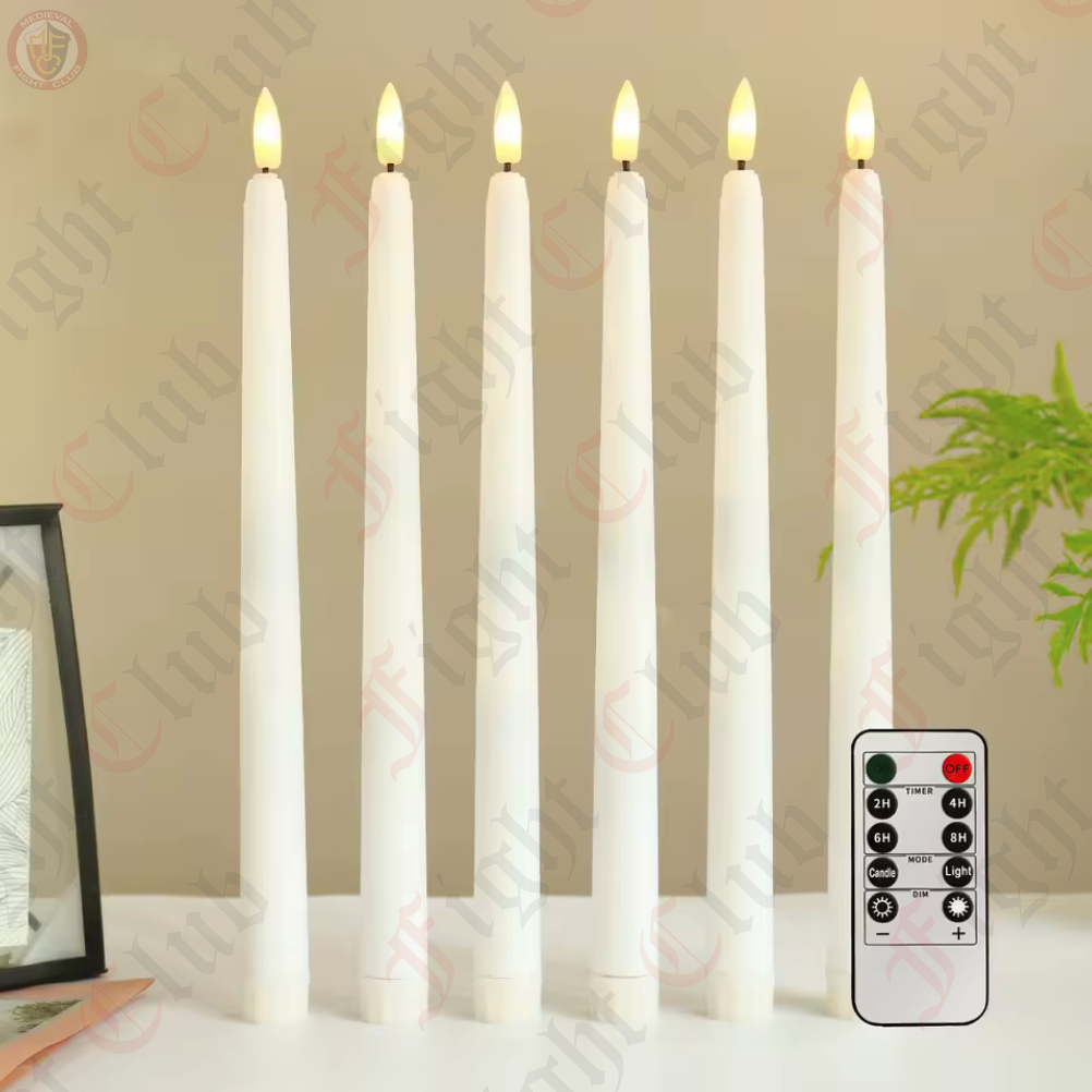 Decorate your home or campsite with this set of 6 realistic LED candles that will add ambience and atmosphere. Forget about leaking wax, smoke or fires as each candle is battery operated by two AAAs (not included). Choose between flicker mode (to emulate a real candle) or a constant on mode for solid light, as well as a 2, 4, 6, or 8 hour timer switch to schedule a time to turn out the lights.