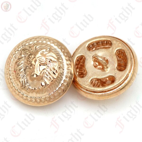 These lion head buttons each have a loop to attach to a garment.