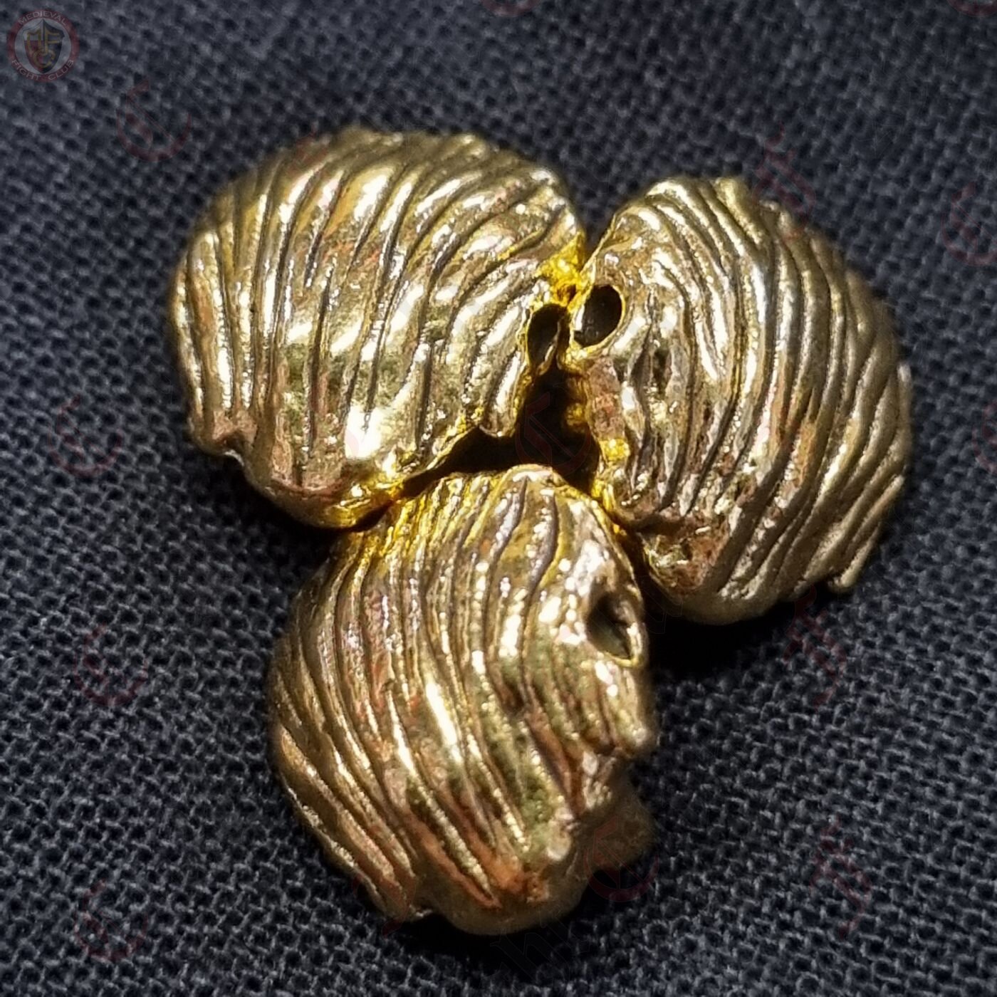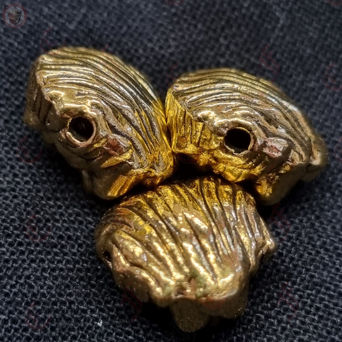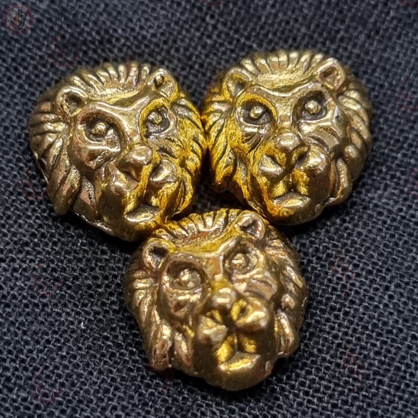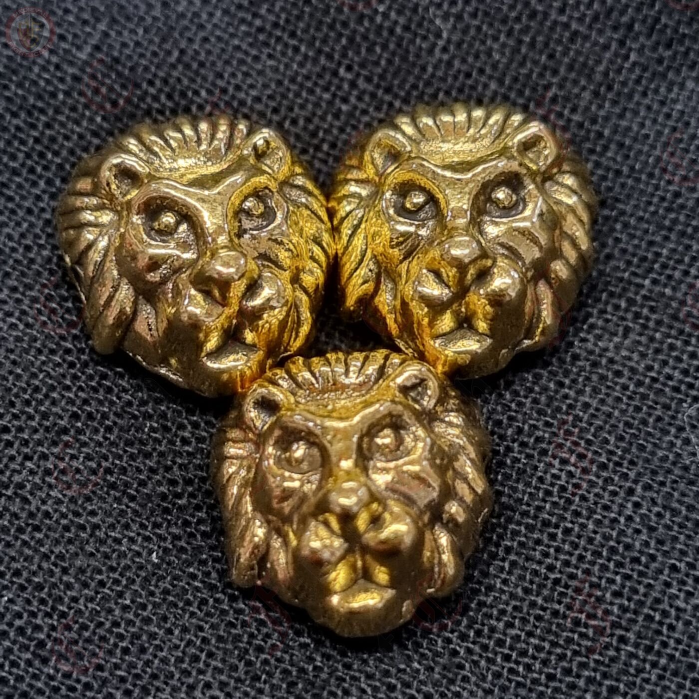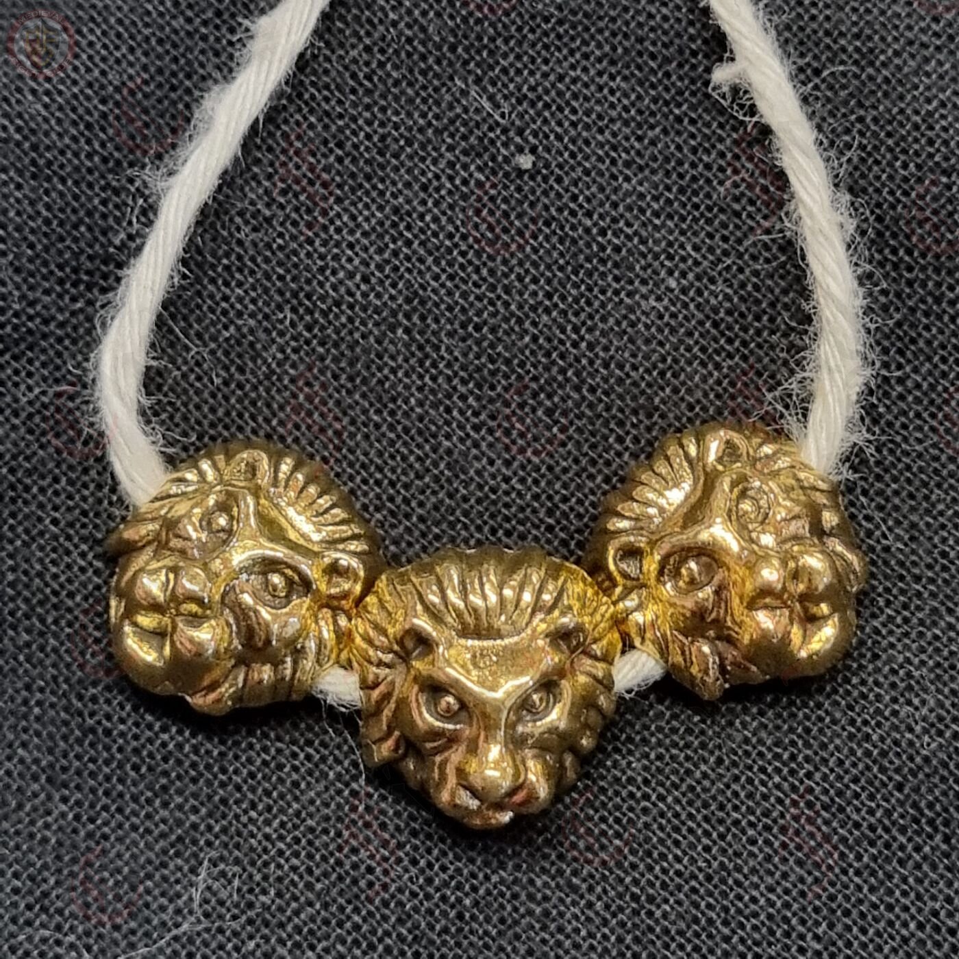 A set of three lionhead beads in a brass colour for threading onto necklaces, bracelets, charms, or any other craft or decoration you can think of.