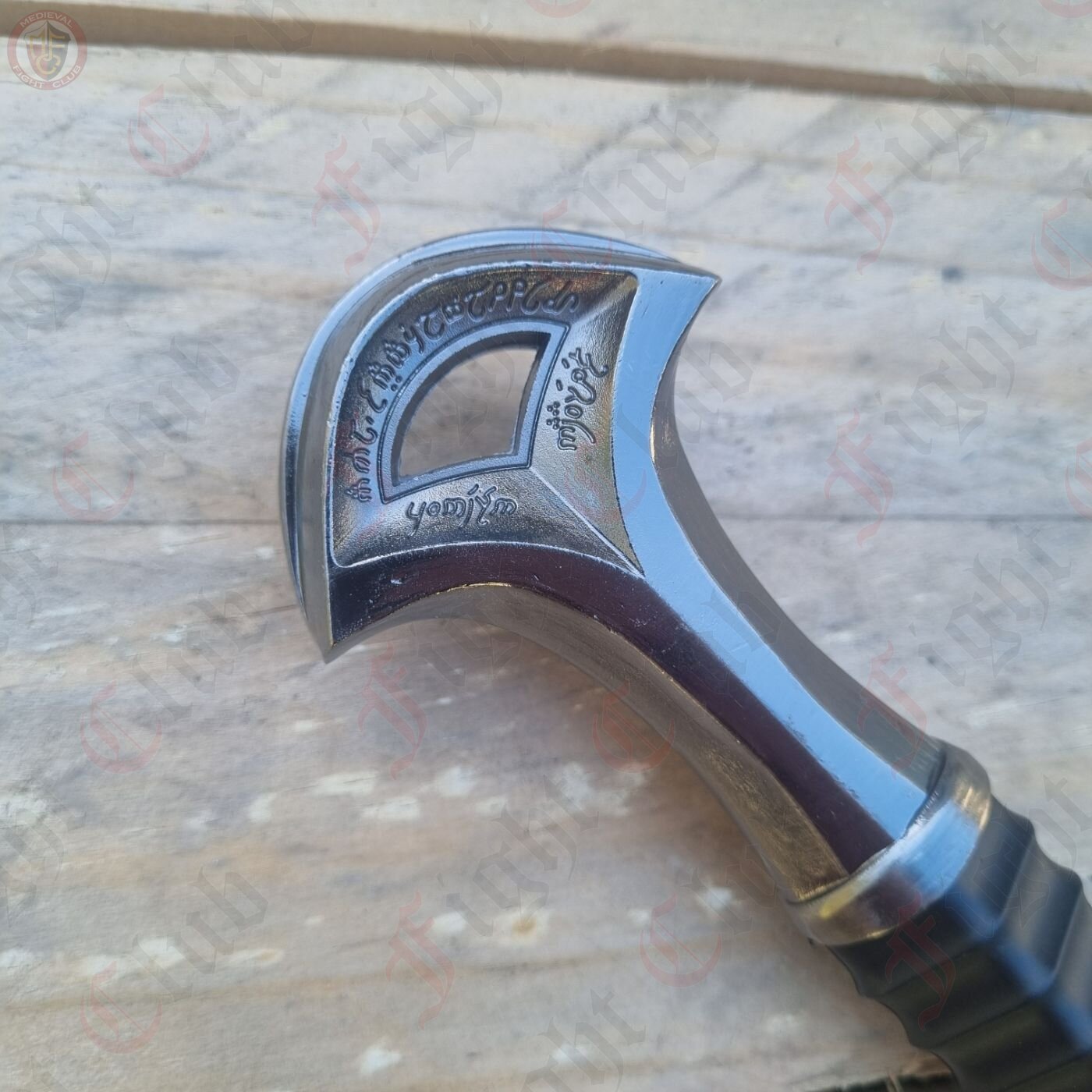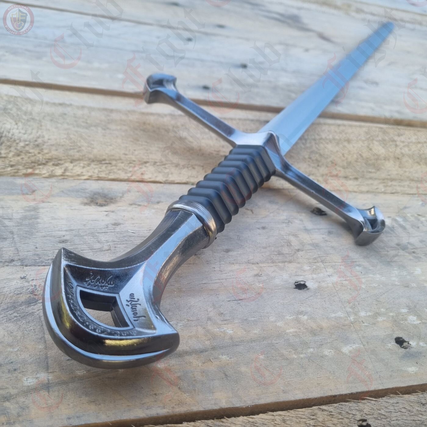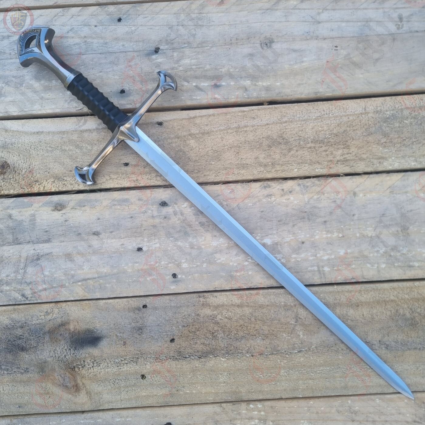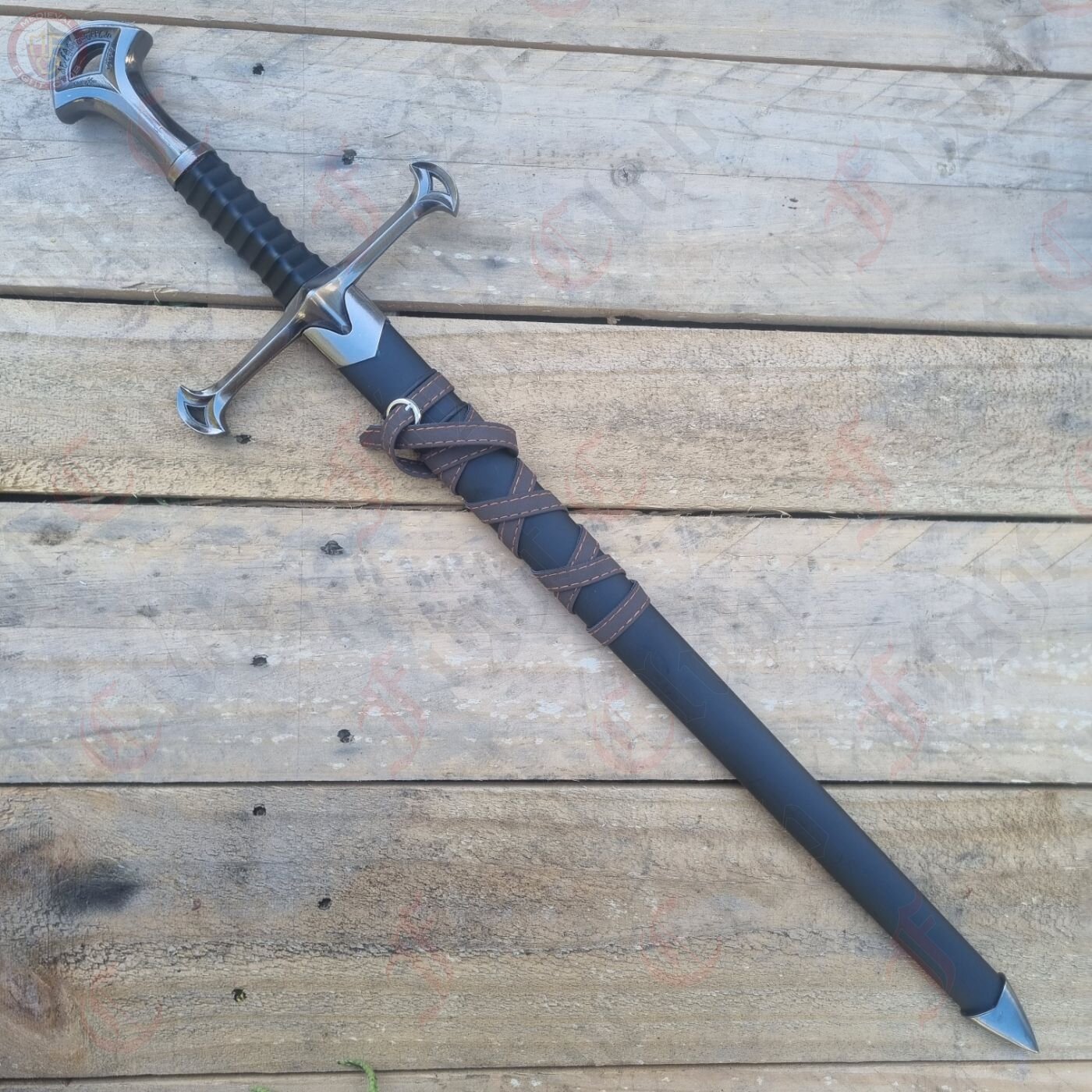 A smaller version of the famous sword of Aragorn, to either better fit your display or your costume. Also works great as a letter opener! Made of stainless steel and comes with a scabbard with belt for attaching to your person.