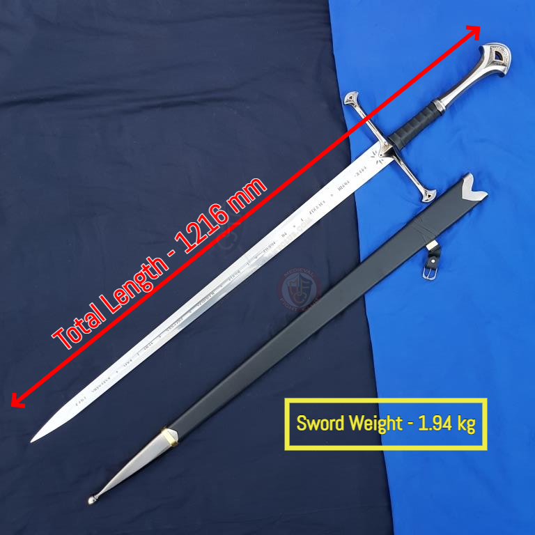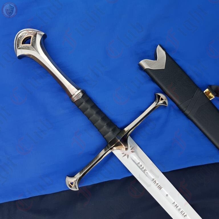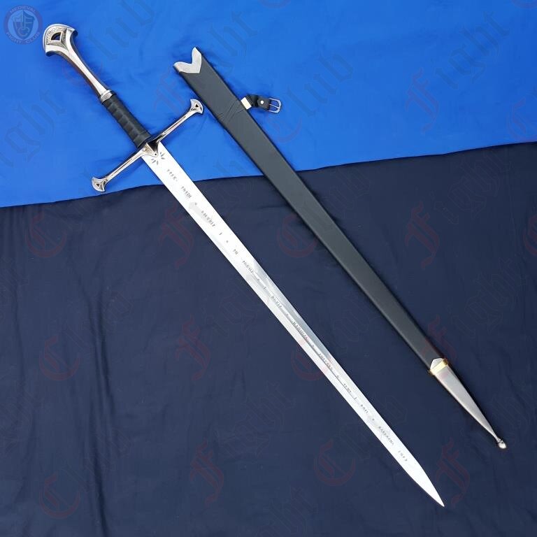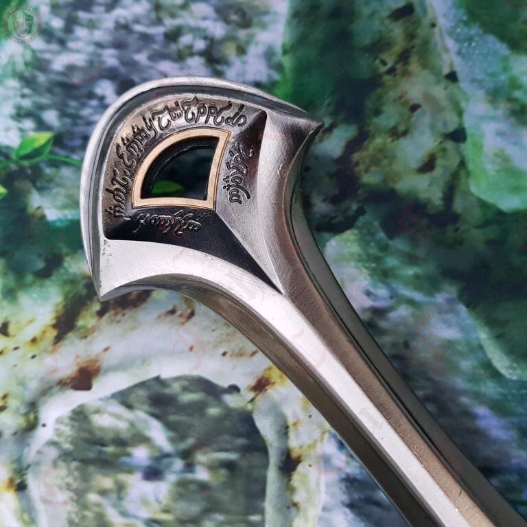 The Quenyan Inscription down the blade translates to "Sun. I am Andúril who was once Narsil, sword of Elendil. The slaves of Mordor shall flee from me. Moon"