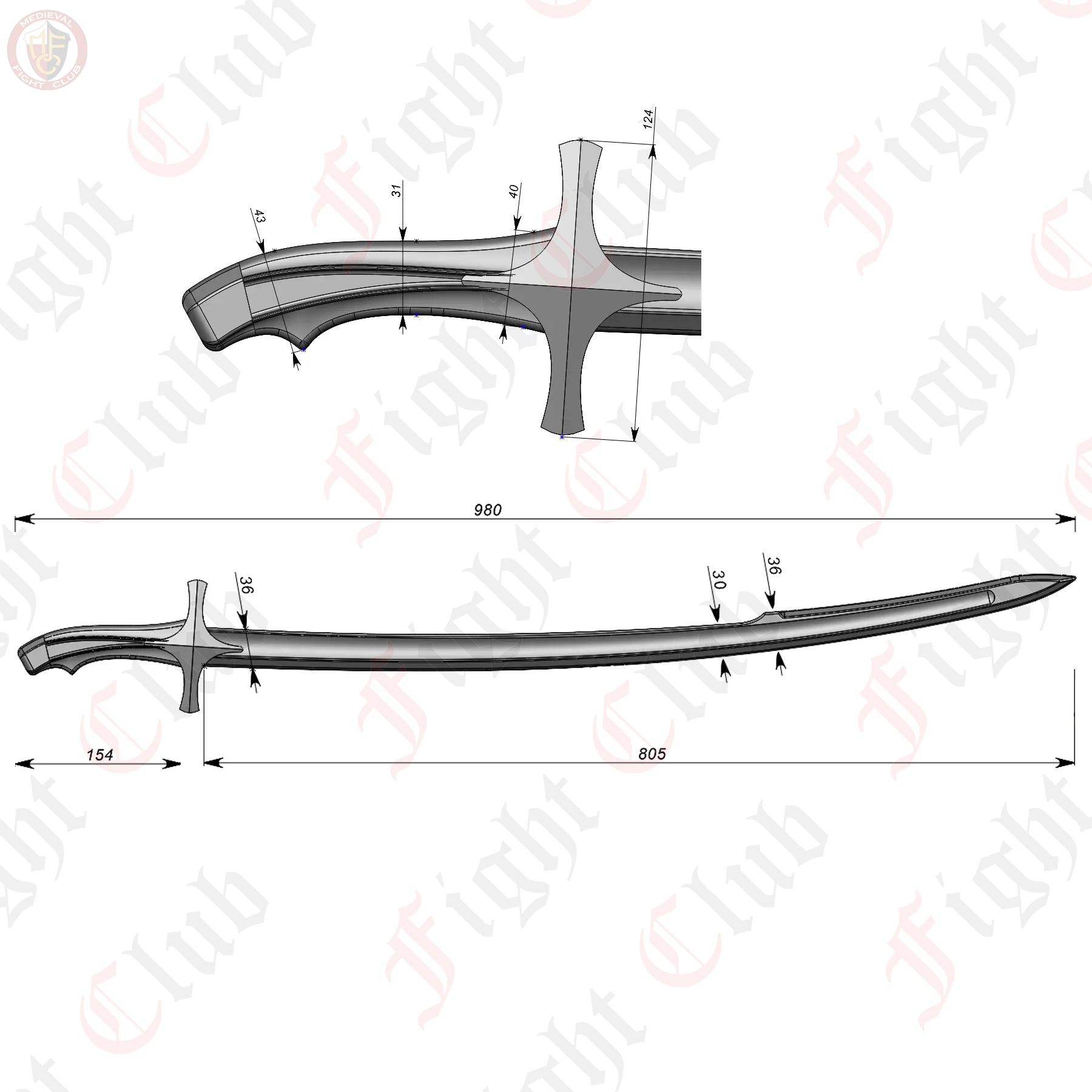 This design is an emulation of a Mameluke Sabre, a type of sabre hailing from the eponymous Mamluk warriors of Egypt.