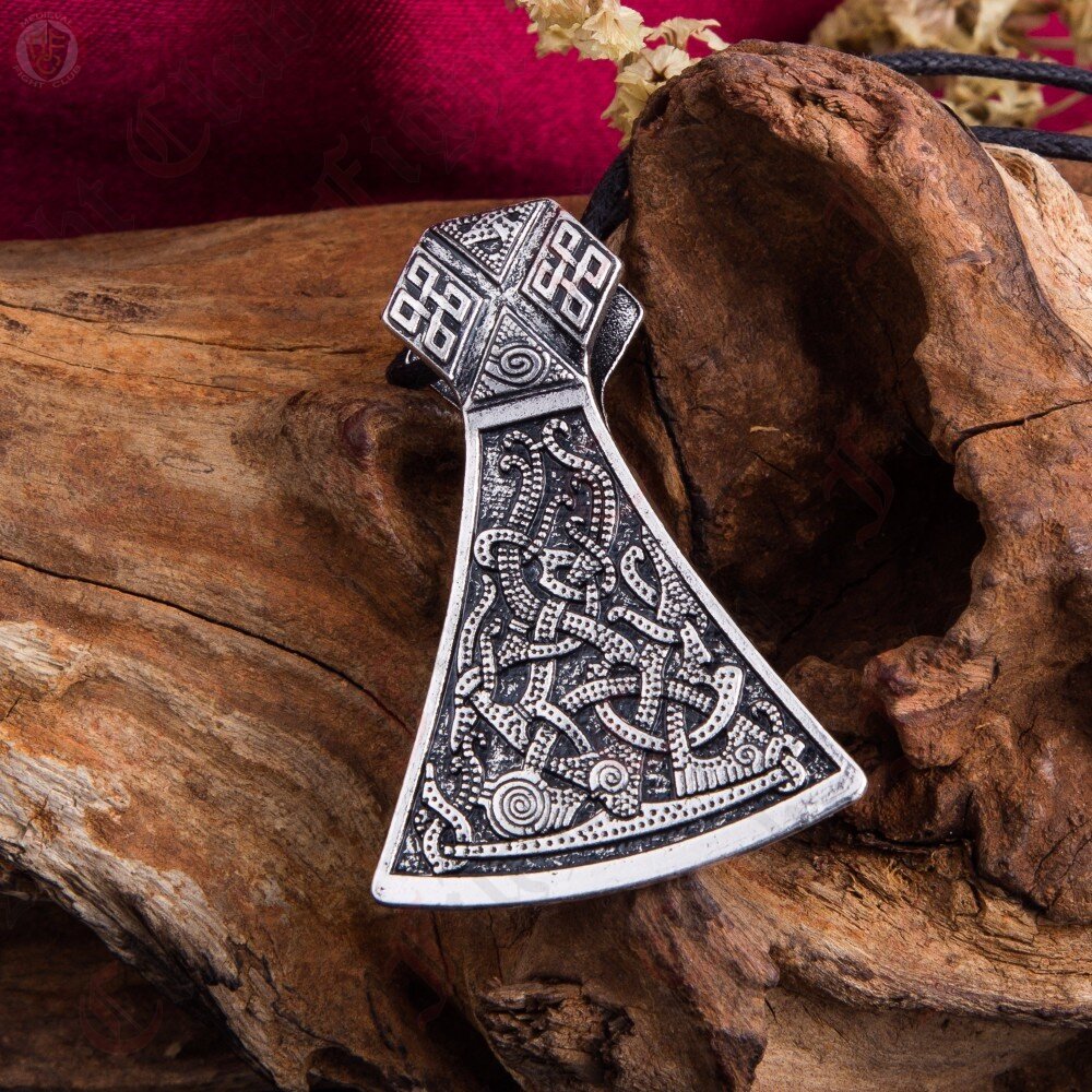 One of the most magnificent finds from the Viking Age is one of the axes from the grave at Mammen. It is made of iron with silver inlay. The axe is decorated in the so-called Mammen style, which is named after this particular find. The style arose in the 900s and it survived until around 1000. The motifs on the axe can be interpreted as both Christian and pagan.