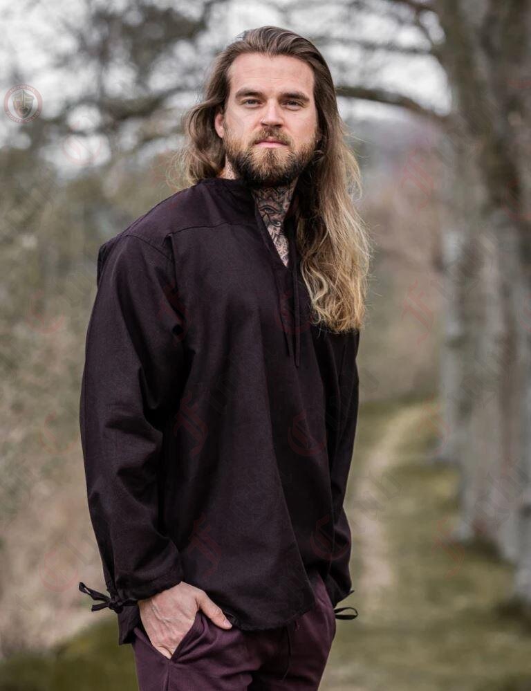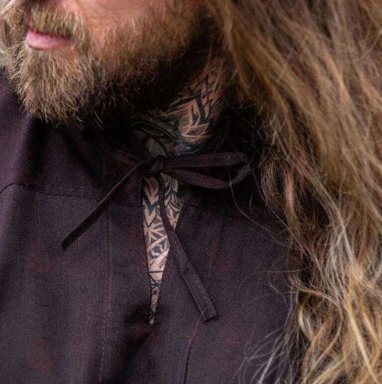 Immerse yourself in the allure of early medieval style with our lightweight brown shirt – perfect for Larp, re-enactment, or fantasy fairs.