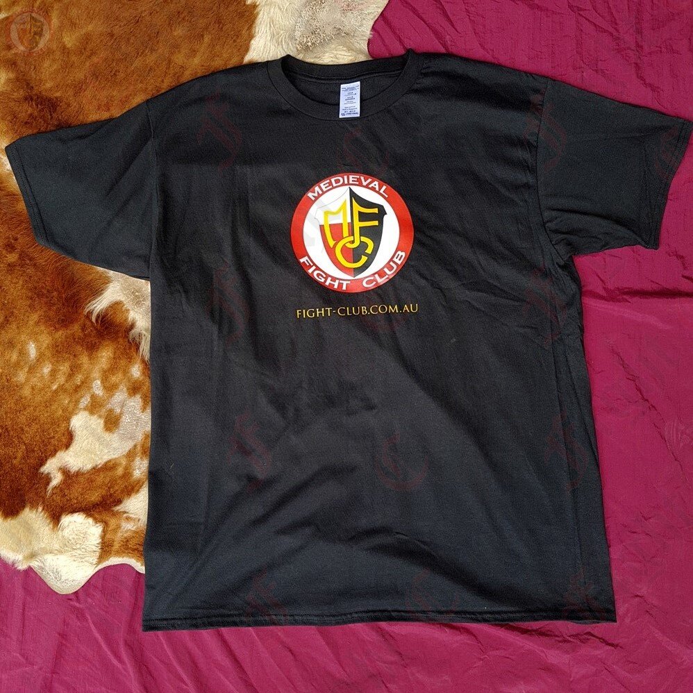 This t-shirt features the Medieval Fightclub Shield logo and a close fit elastic neck hole.