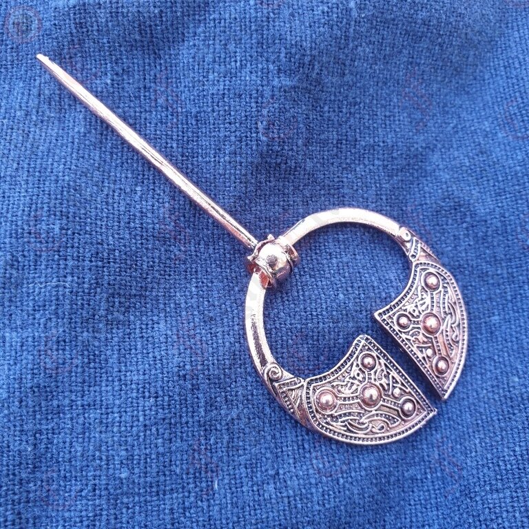 The pin is copper/rose gold in colour. It is a metal alloy.