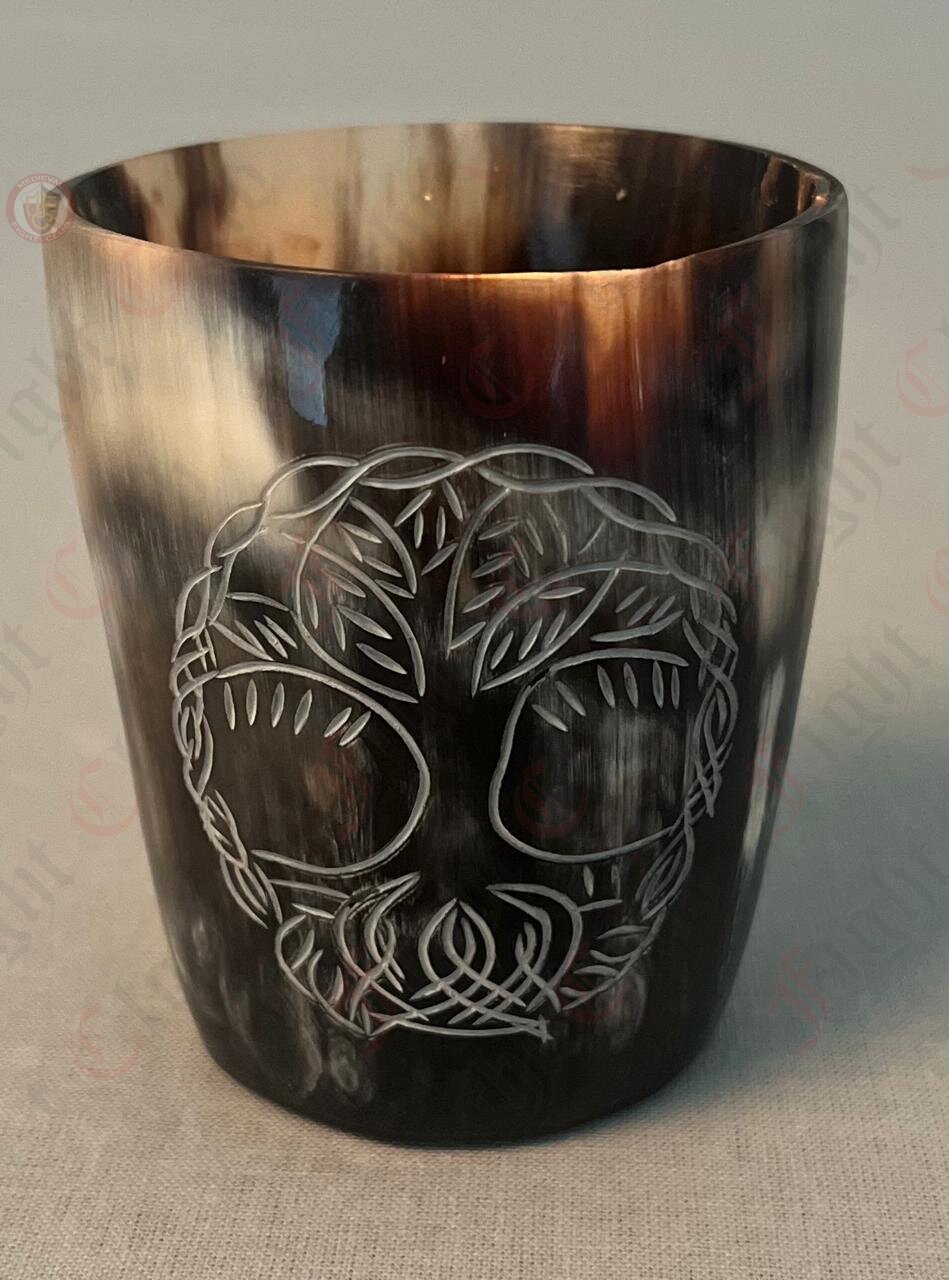 This beautifully crafted, artisanal candle holder features Yggdrasil etched onto the horn.