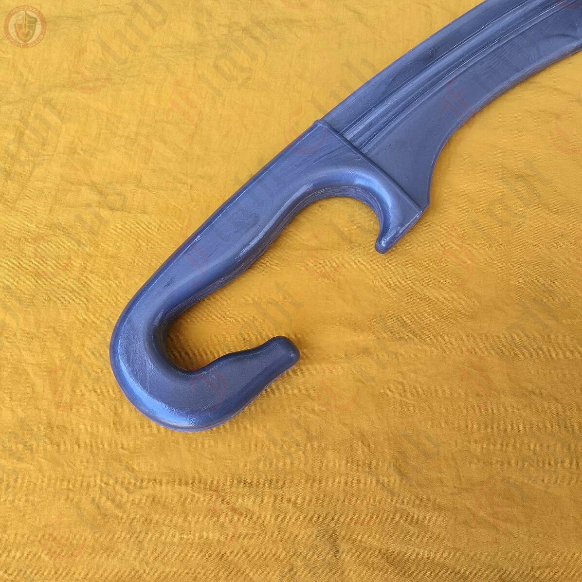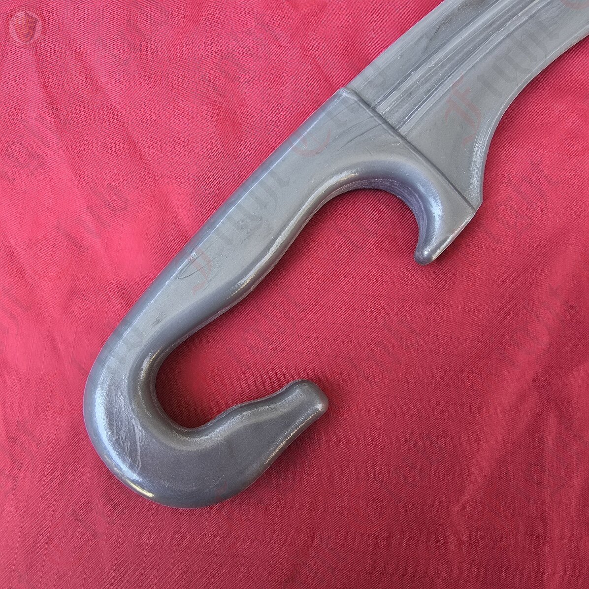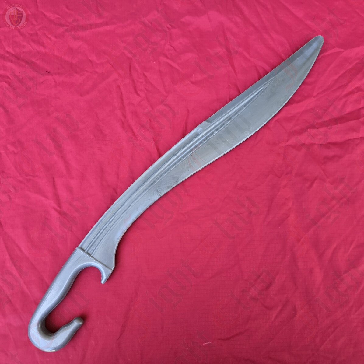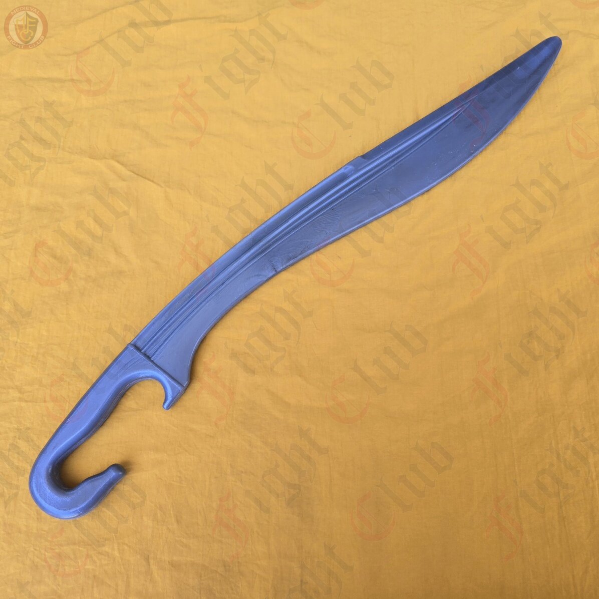 A synthetic plastic falcata waster suitable for HEMA or WMA fighting. The falcata were swords derived from the sickle-shape knives of the Iron Age. It is thought that it was introduced in the Iberian Peninsula by the Celts who spread their iron-working technology.