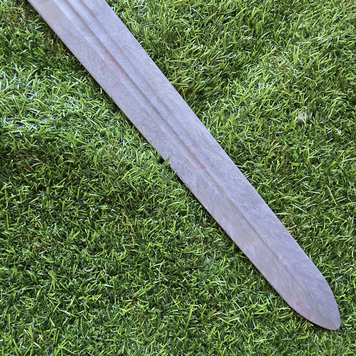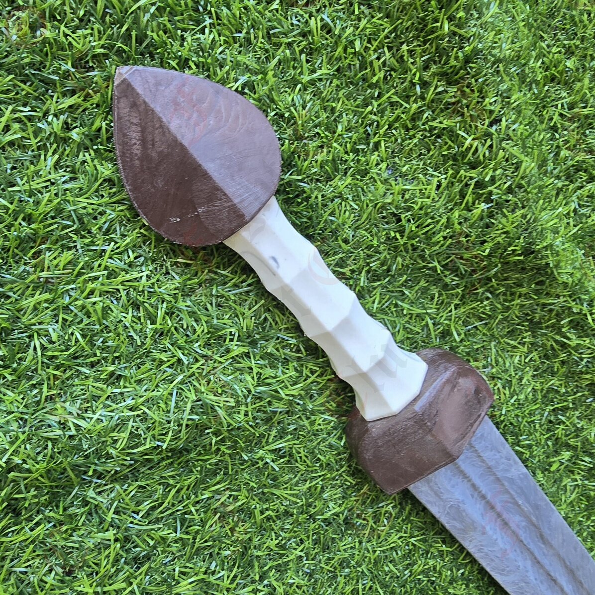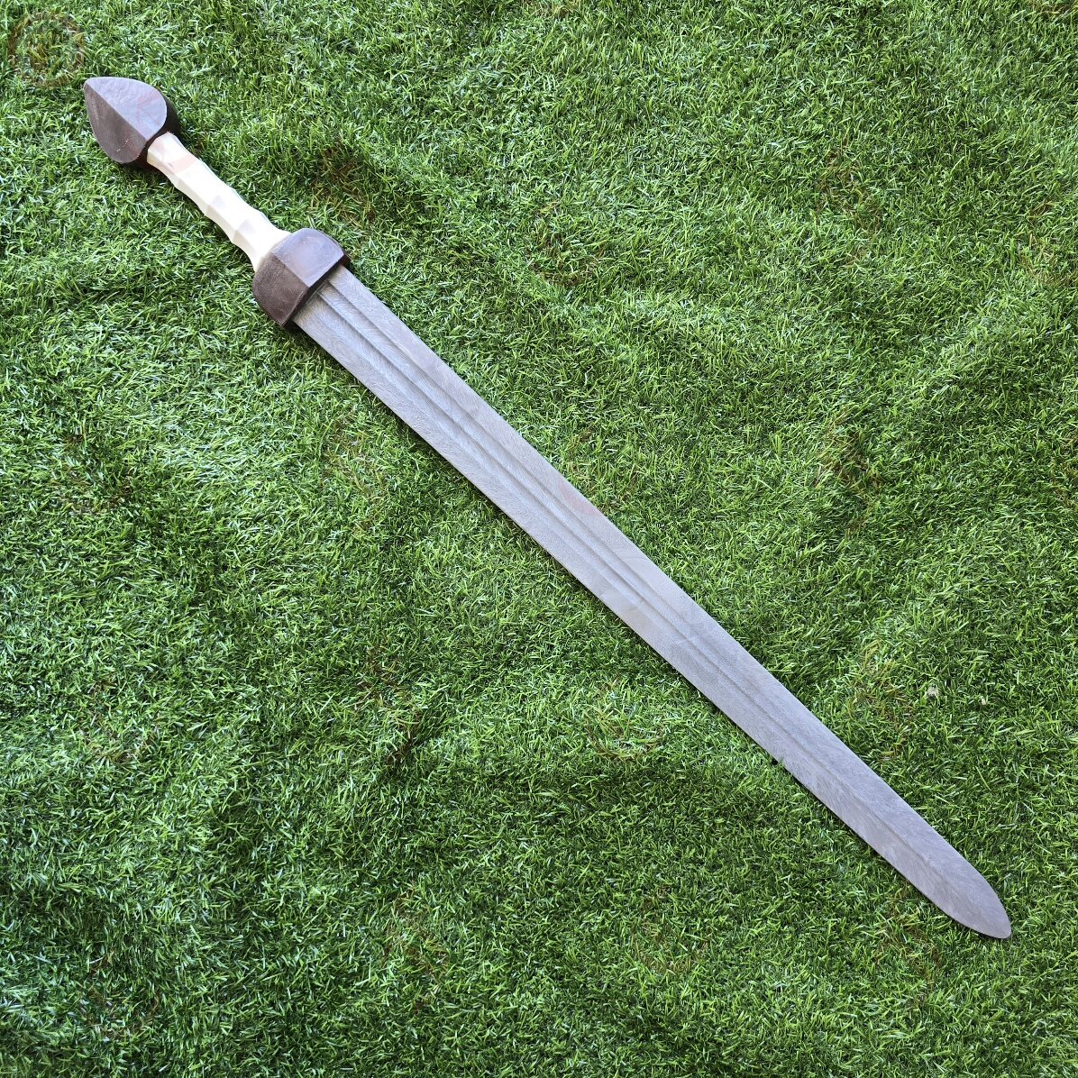 This design is an emulation of a Roman Spatha, in particular the Staubing Nydam spatha found in Germany, dated to the 3rd century BC.