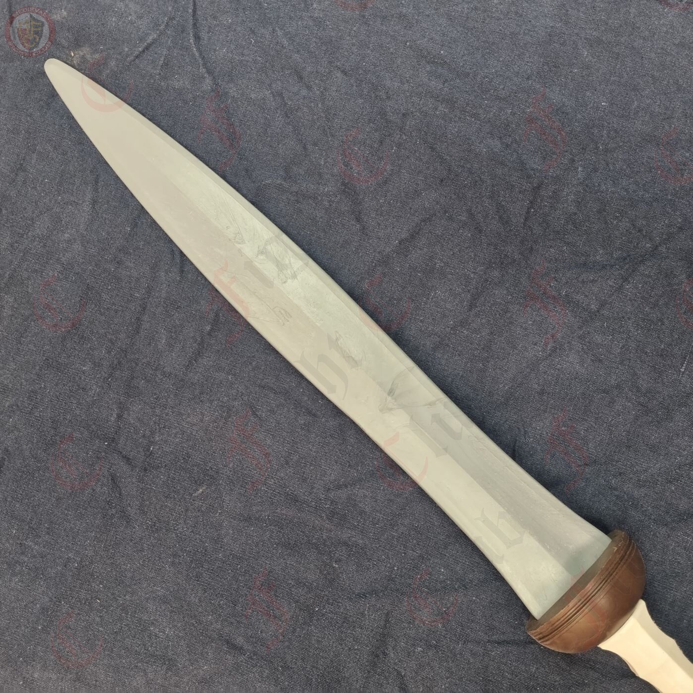 This design is an emulation of a Gladius, the classic weapon of legionaries and footsoldiers of the Roman Republic and Empire. This gladius is based upon the Mainz Gladius.