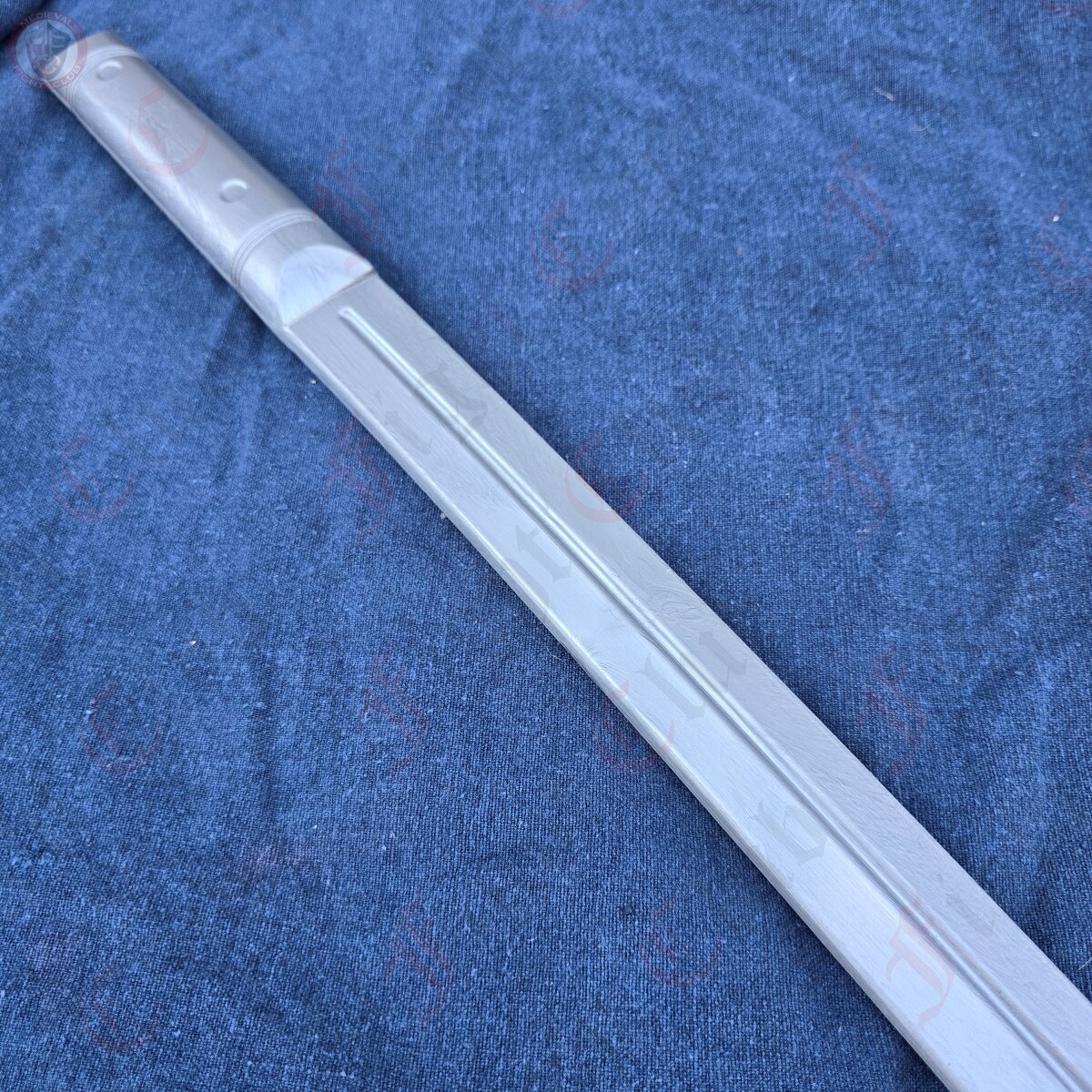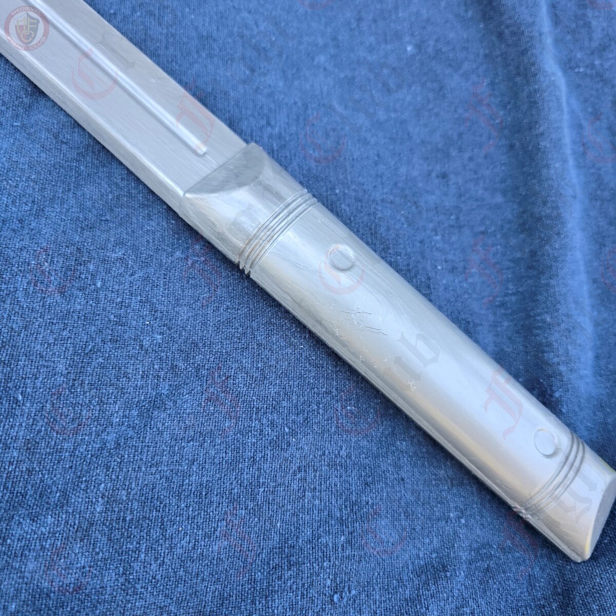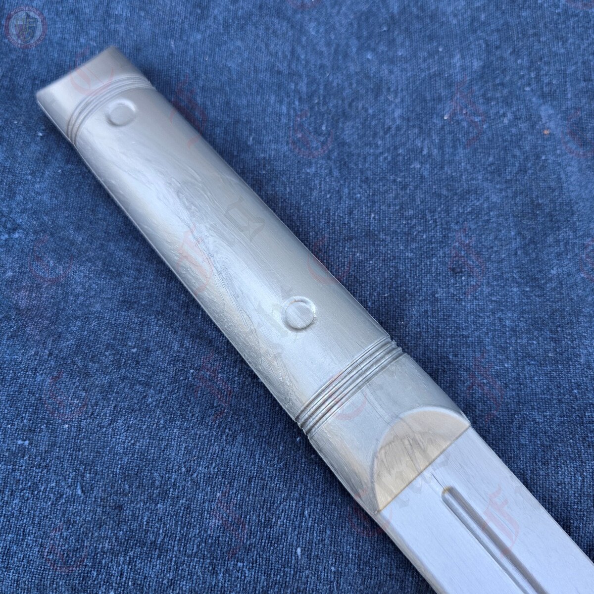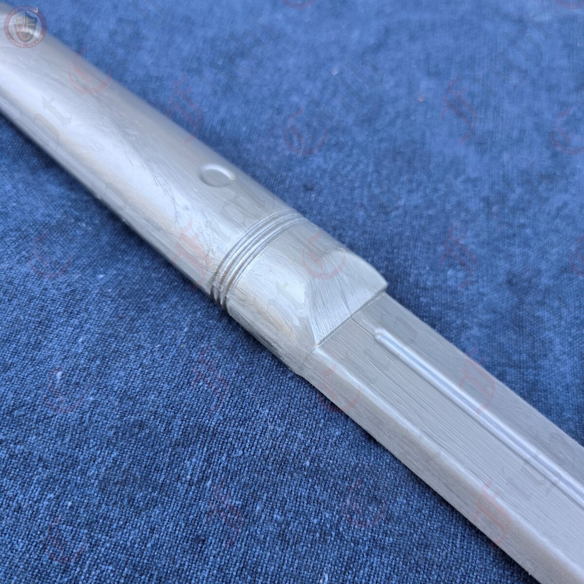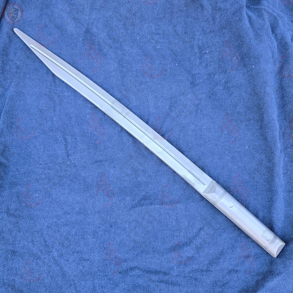 This waster also features a steel finish, in the sense that the nylon pigment is steel grey, making it look more realistic than other wasters. This design is based off of classic examples of Viking seaxes, with a long single edged blade and short handle, with no crossguard.