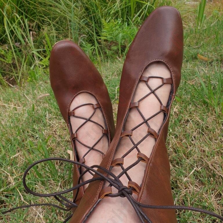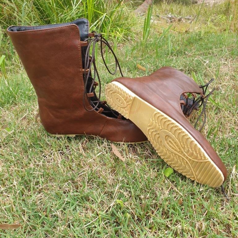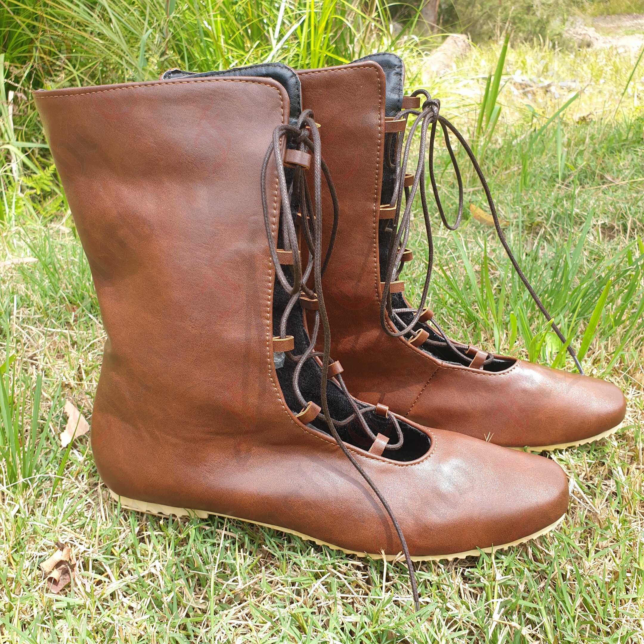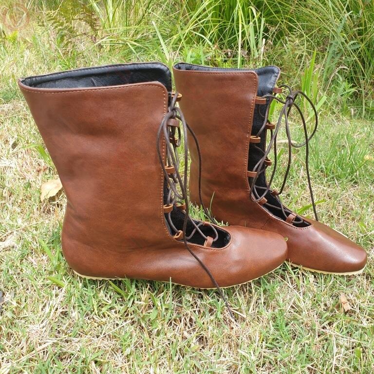 These boots are perfect for medieval costume, cosplay outfits and LARP adventures. The leather is soft and supple. The soles ensure a good grip is maintained on the ground.