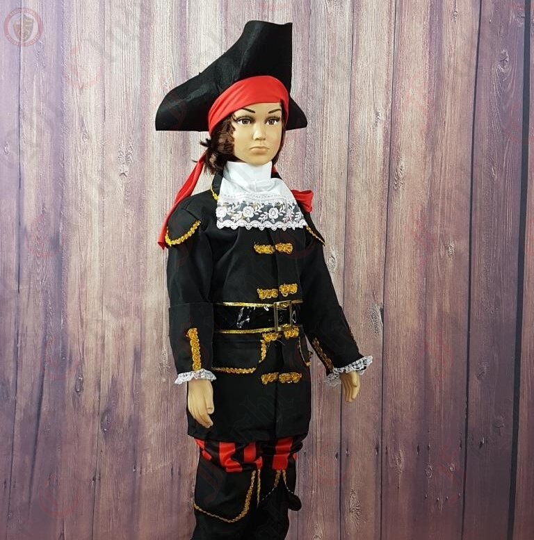 This costume is inspired by the popular renditions of European pirates of colonial times.