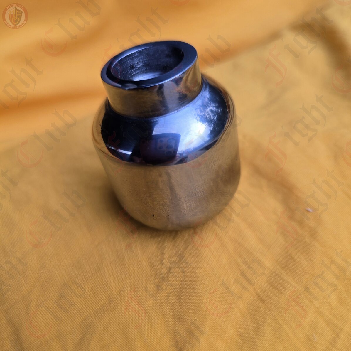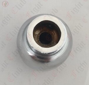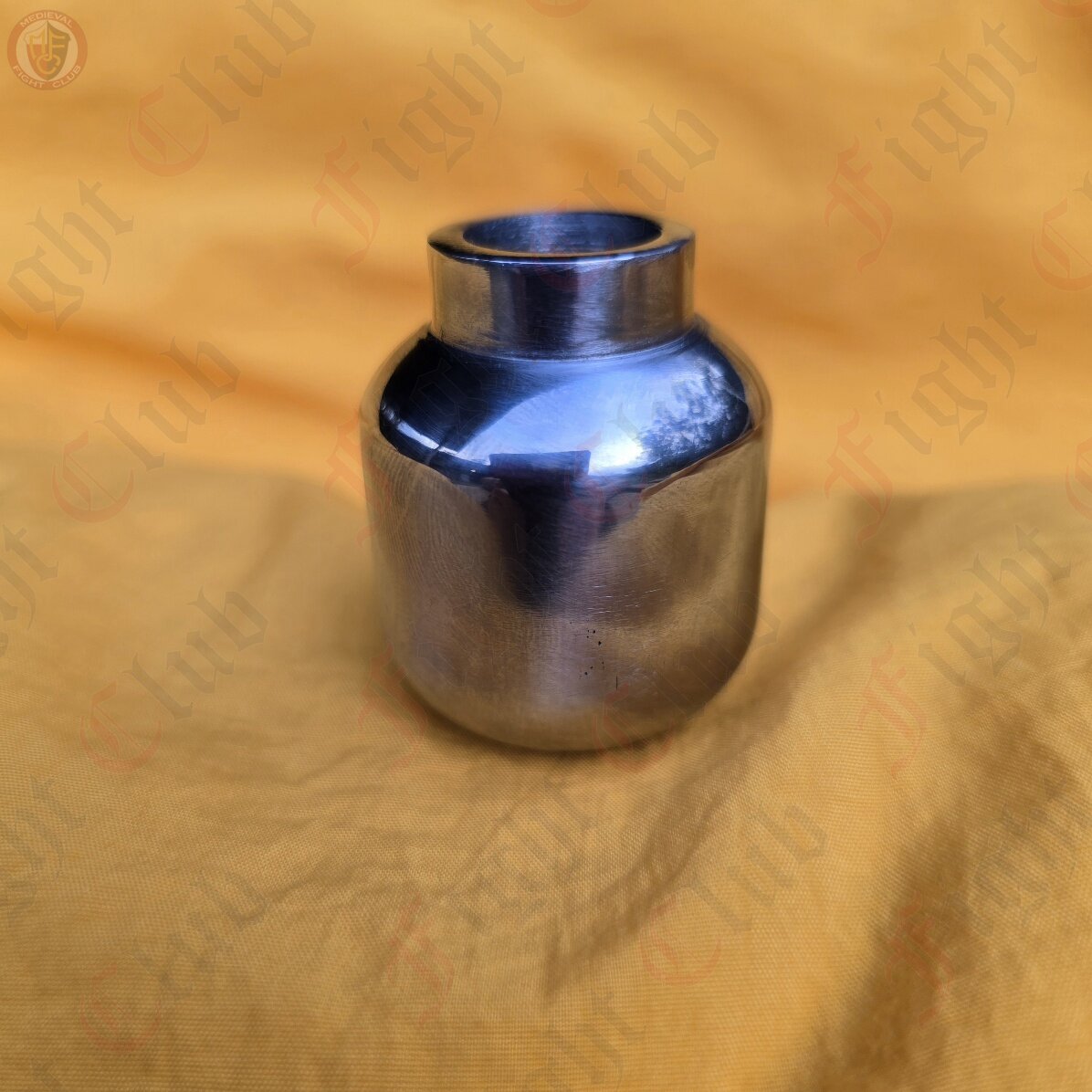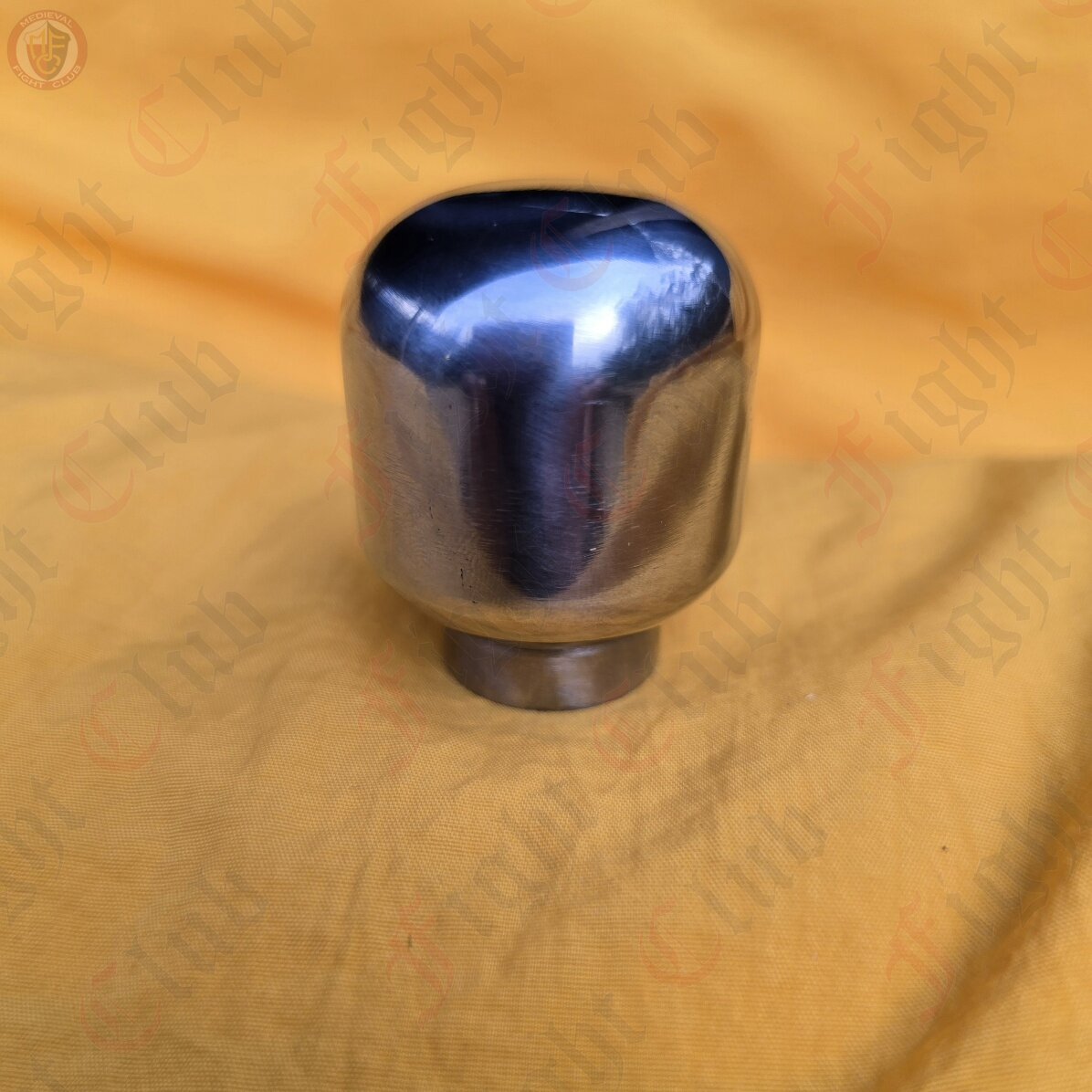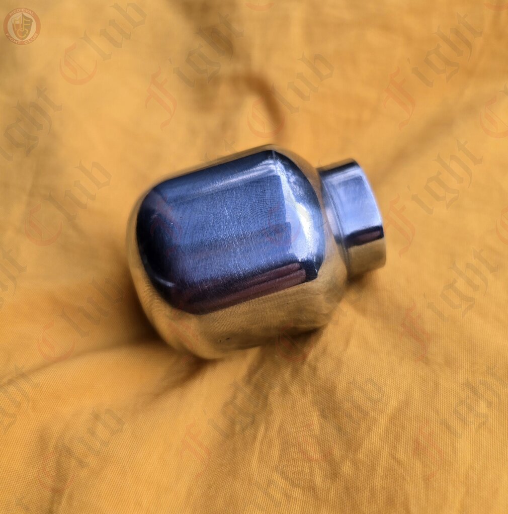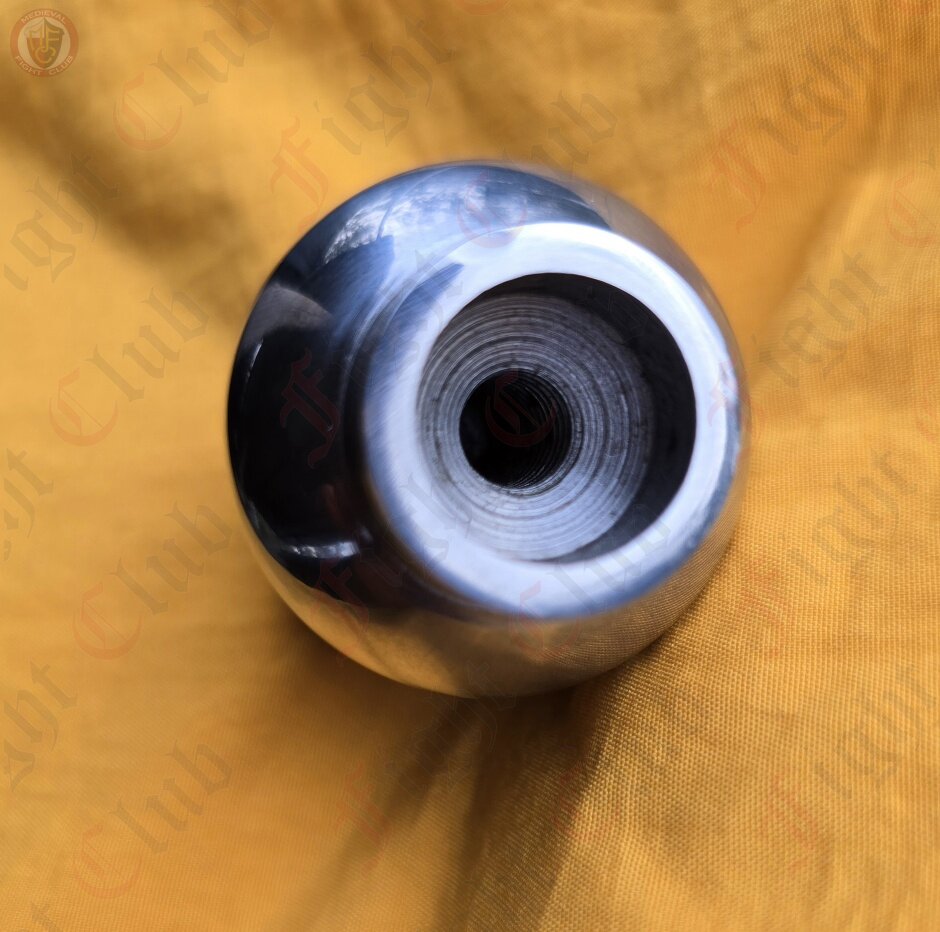 Steel ball stopper pommel threaded with an M8 thread. Also called a globular or spherical pommel, this type of pommel is most common in 9thC and 10thC swords, but is also found in examples as late as the 16thC. This can probably be attributed to its simple but practical design, allowing it to carry on in use throughout the centuries. This particular example looks excellent with a sabre blade, but will suit straight blades well too.