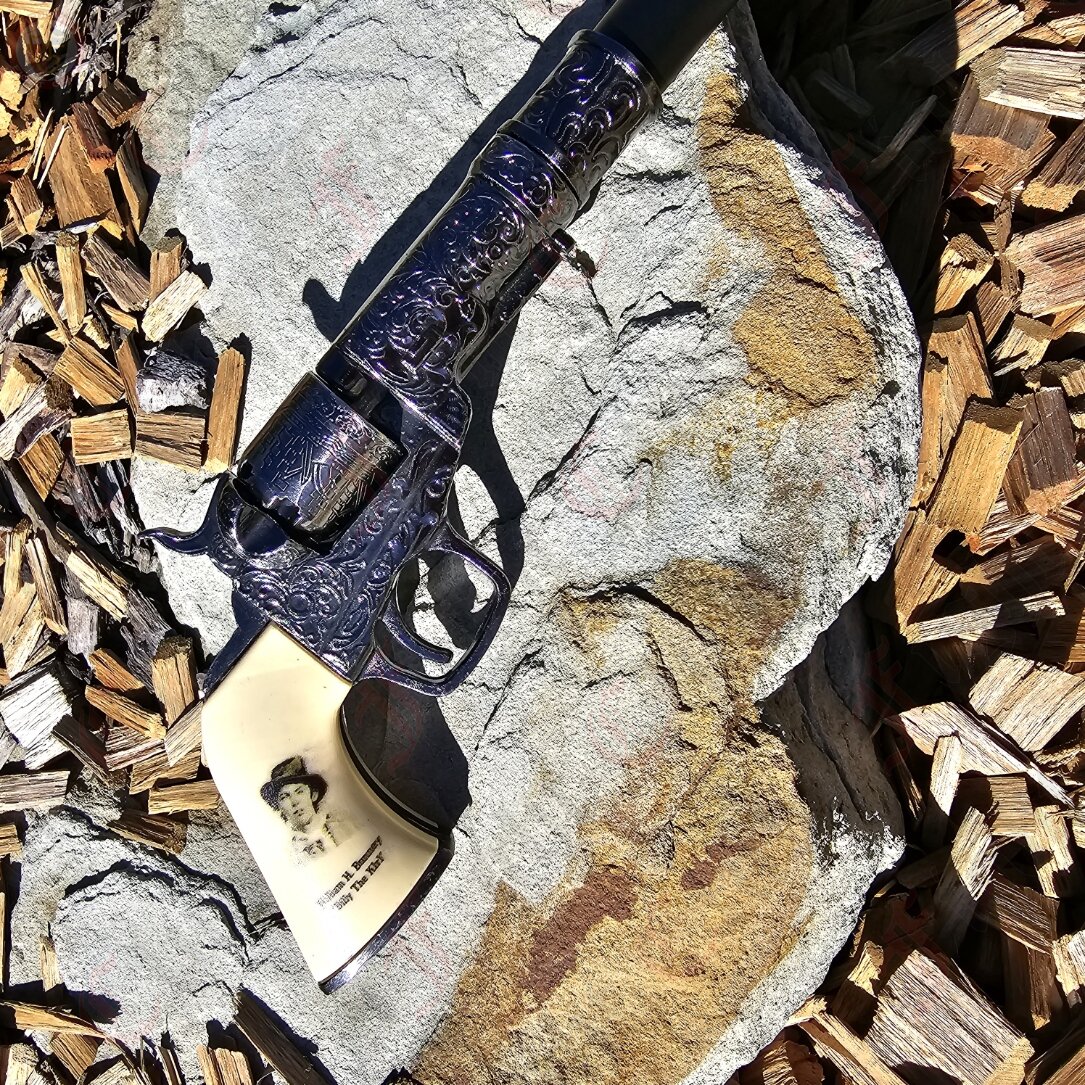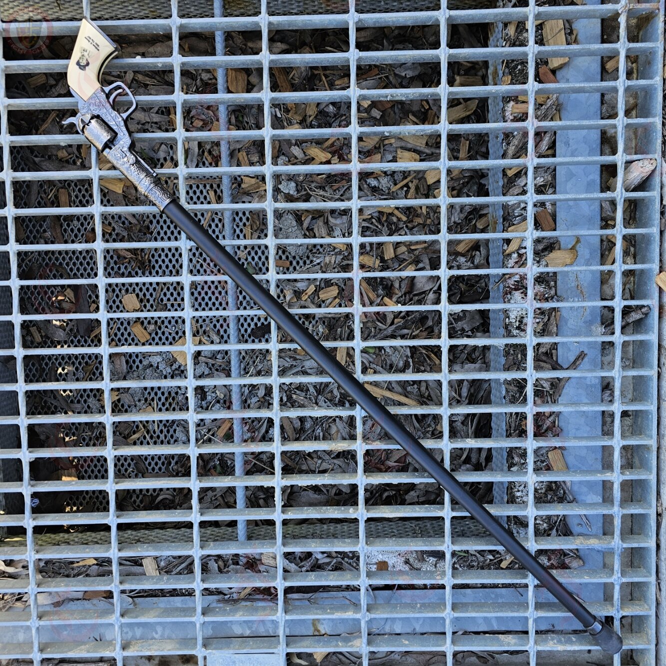 Walking cane featuring a revolver as the grip. Non-functioning (unfortunately), but still as smooth and stylish as canes come.