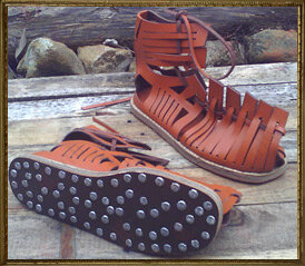 The sole on these Roman sandals is made of 4 layers of strong leather plus hobnails.