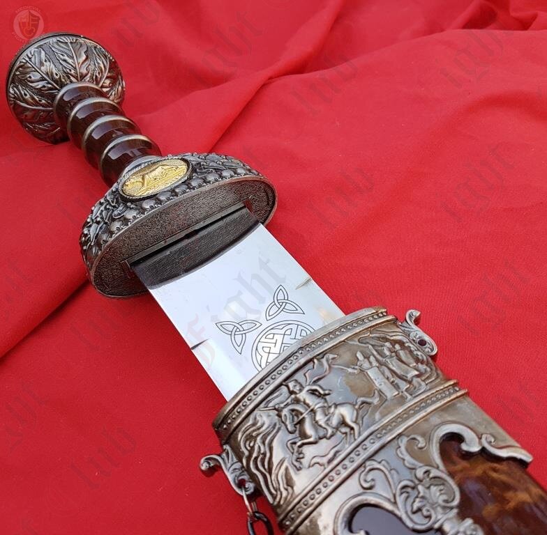 • Decorative patterning and edging around the middle of the scabbard and encasing the tip.