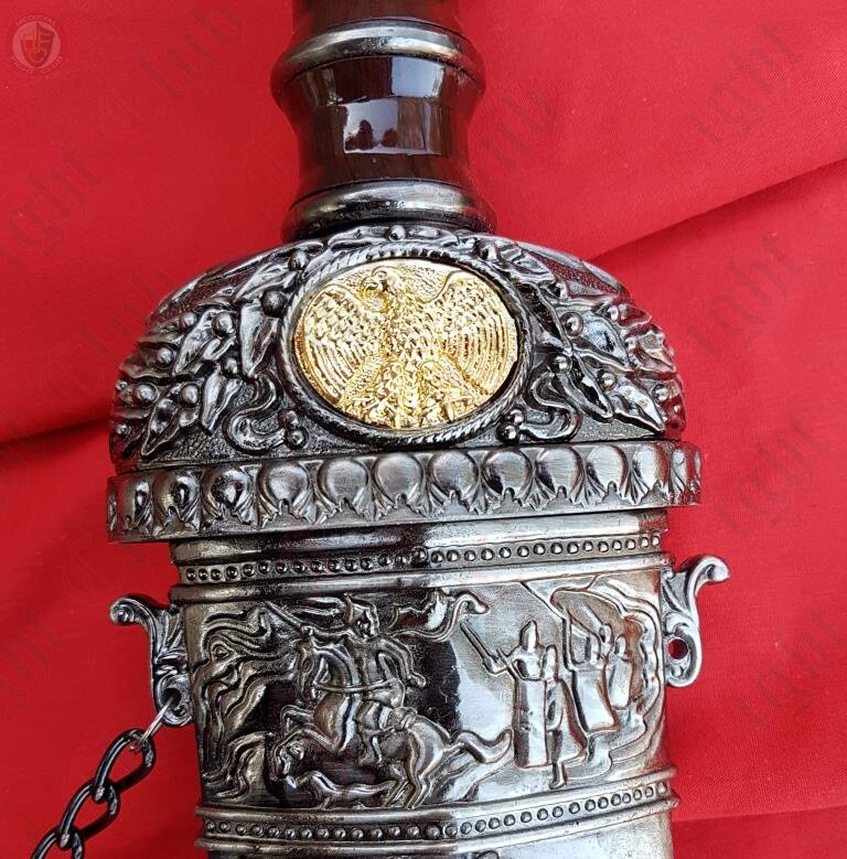 • A sigil of the mythical founders of the Roman empire, twin brothers Romulus and Remus with the she-wolf that raised them on one side of the guard and the Roman eagle sigil upon the reverse side of the guard.