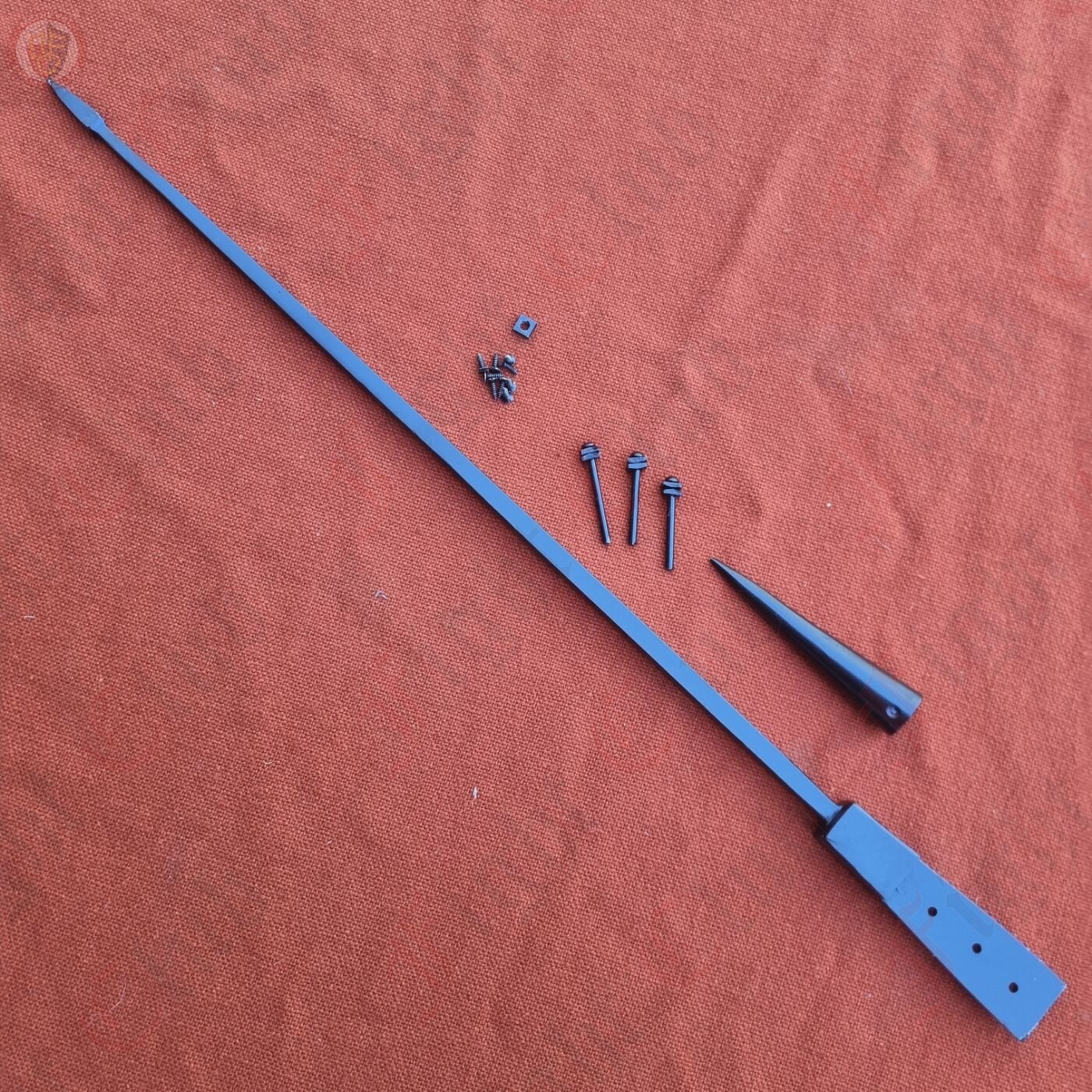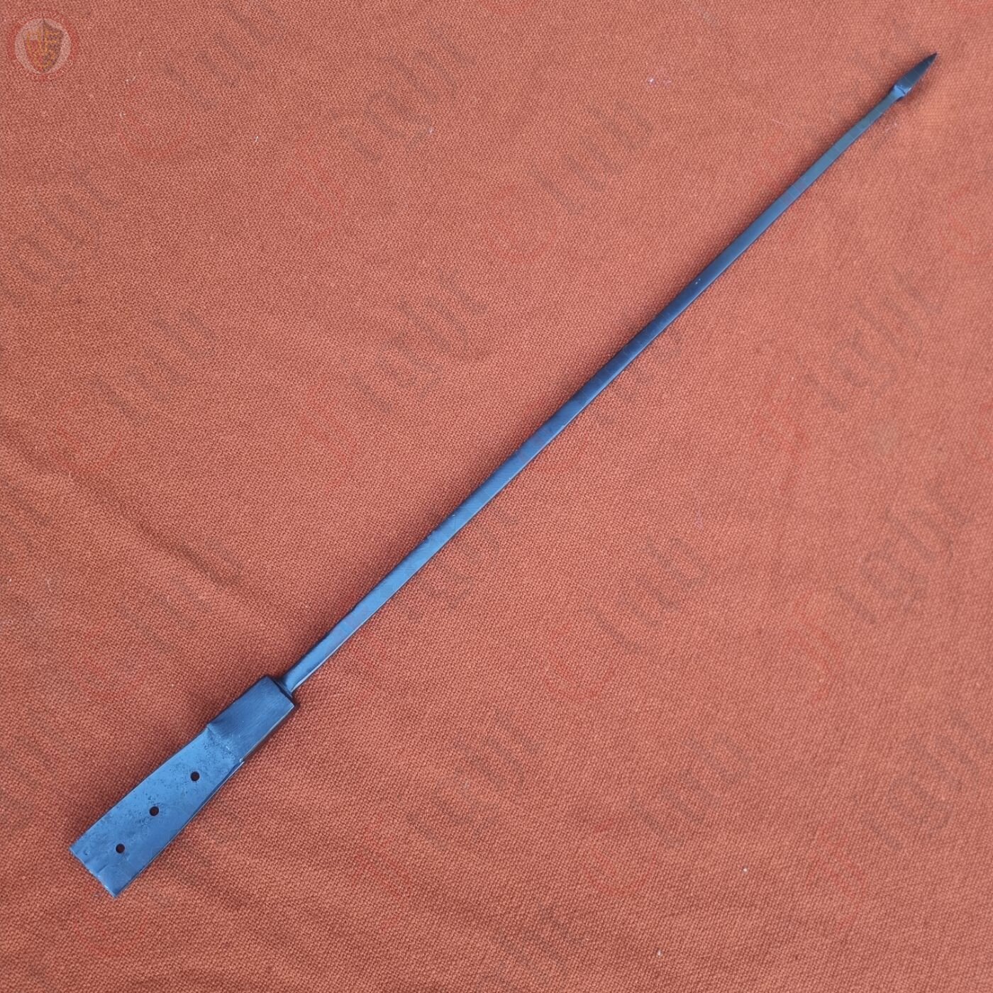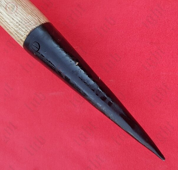 It was generally about 2 metres long overall, consisting of an iron shank about 7 millimetres in diameter and 60 centimetres long with pyramidal head. The shank was joined to the wooded shaft by either a socket or a flat tang and was usually made with softer iron.