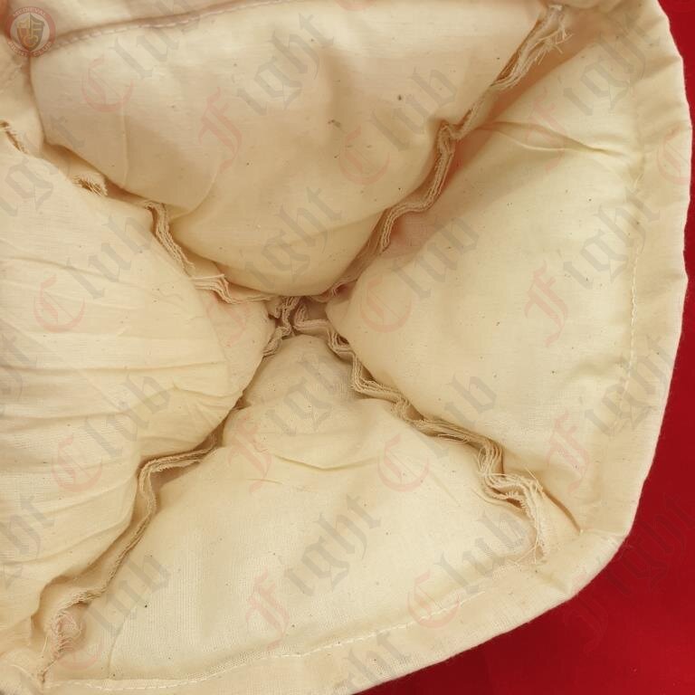 This helmet has been crafted in 18 gauge mild steel with brass fixings. It is open at the front and provides protection to the side face and back of the neck.