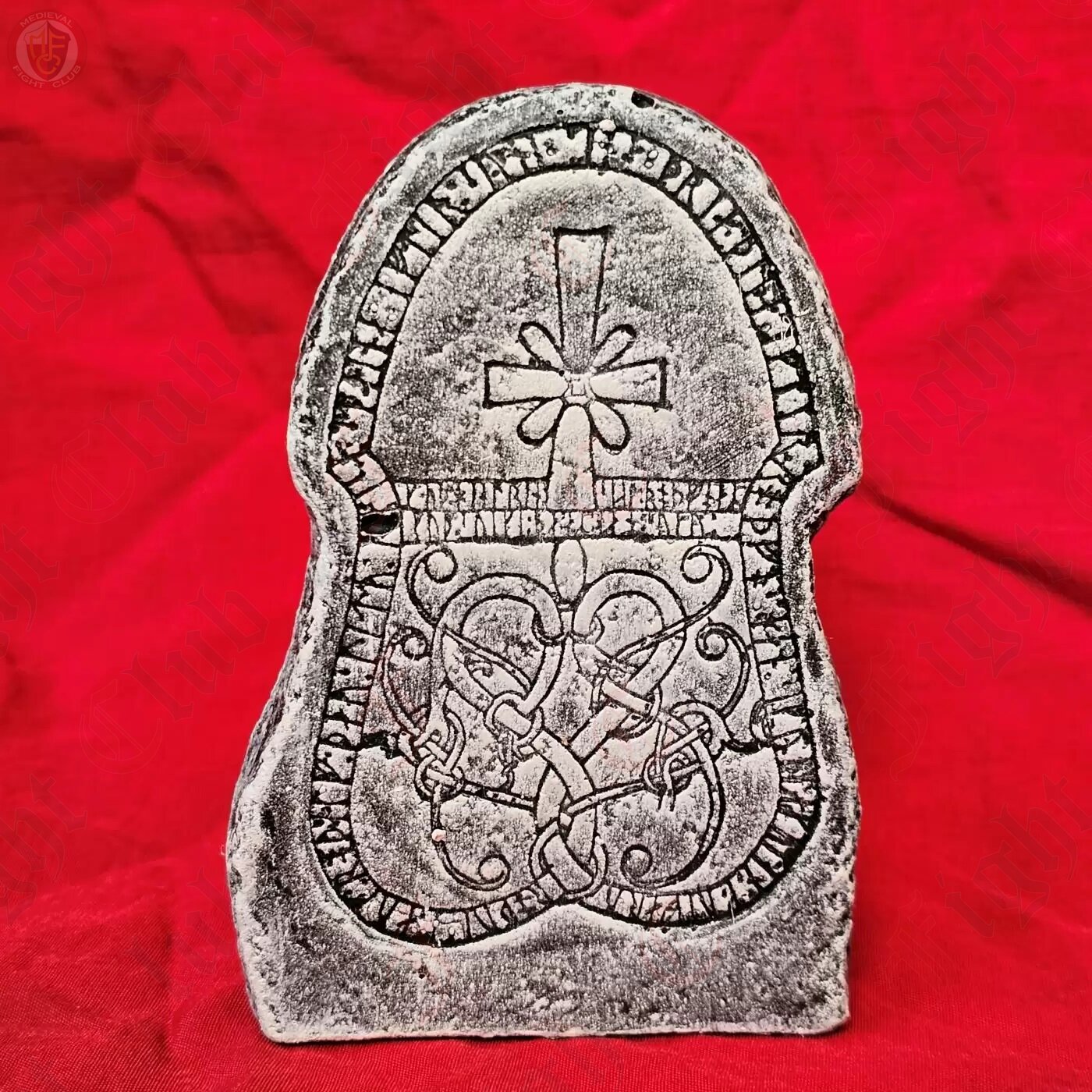 The inscription translates to:"Rodvisl and Rodälv, they raised these stones in memory of their three sons. This one in memory of Rodfos. He was betrayed by Valacks (note: Romanian tribe) when he set out. God help Rodfos. God betray those who betrayed him"