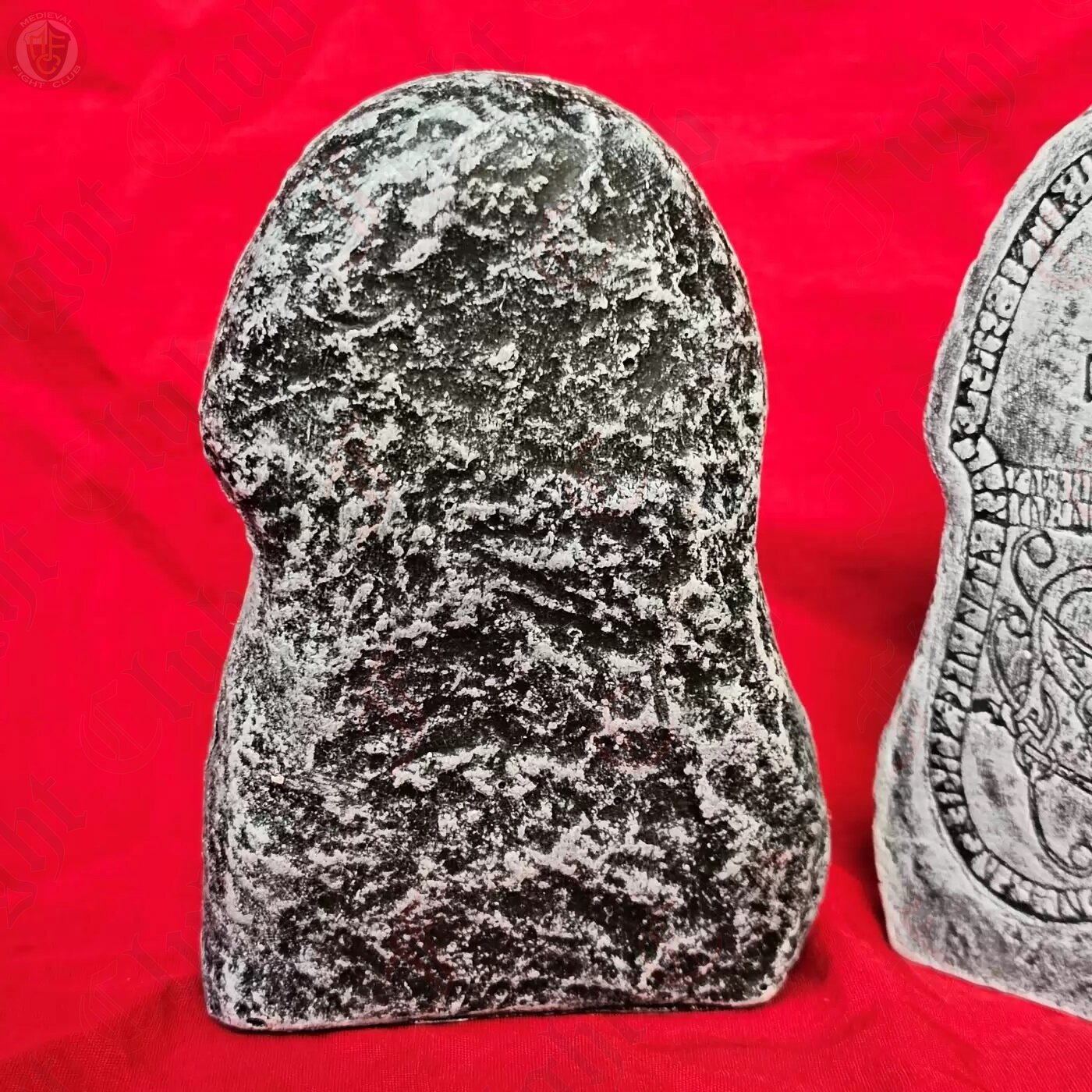 Our runestone is created from plaster and hand-painted in the Fight Club workshop.