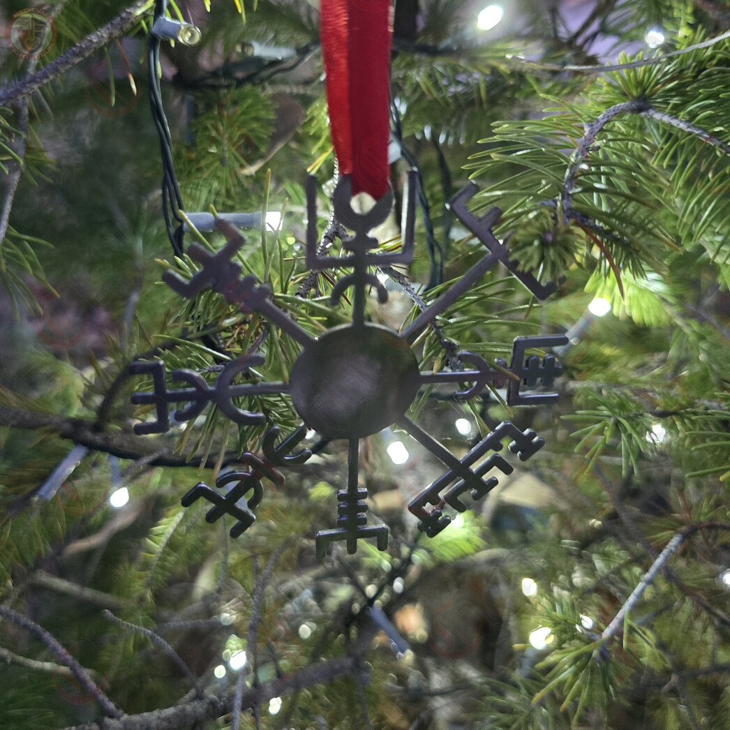 Perfect for hanging on a Christmas tree, in a window, or as a year-round decorative piece, this ornament blends historical symbolism with contemporary craftsmanship. Its durable steel construction ensures it lasts, while its intricate design captures the essence of Viking art and mythology.