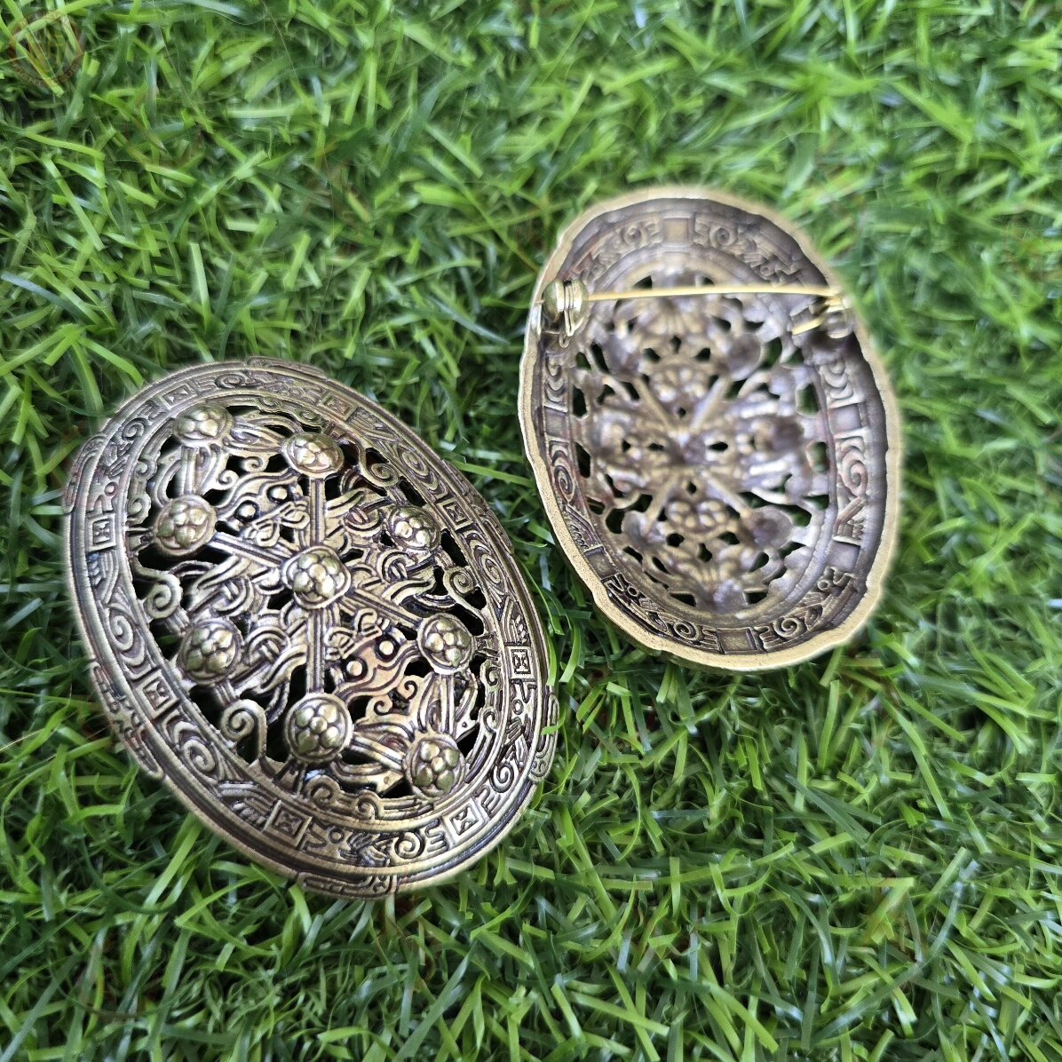 These beautiful tortoise brooches are modeled after an original pair found at Santon Downham in Suffolk England dated to the late 9th century.