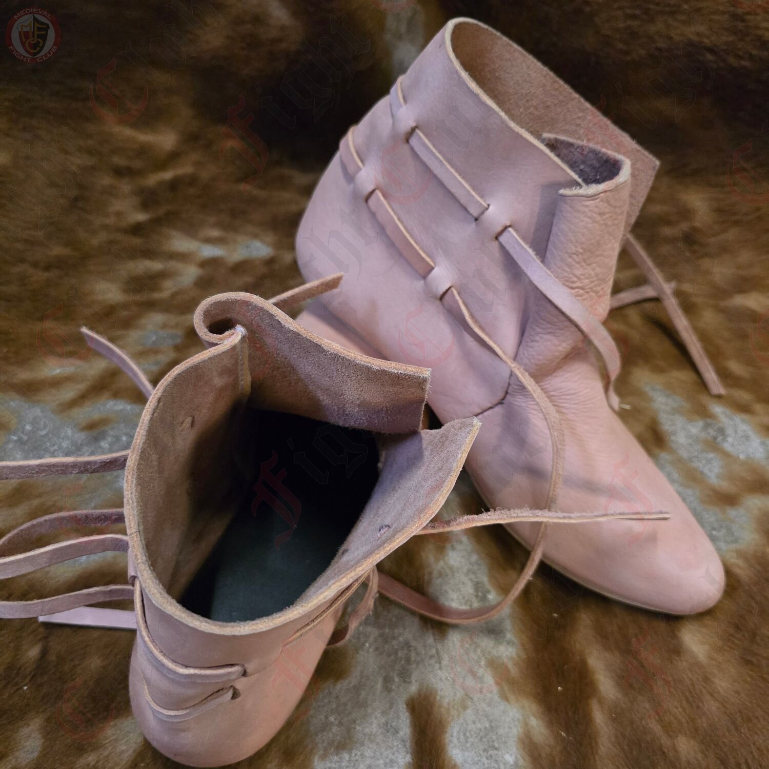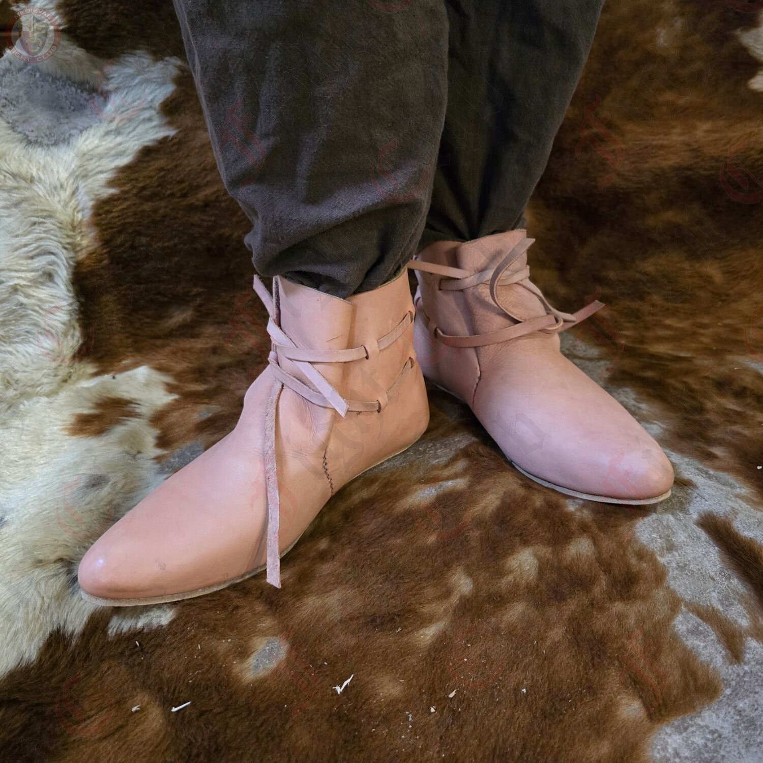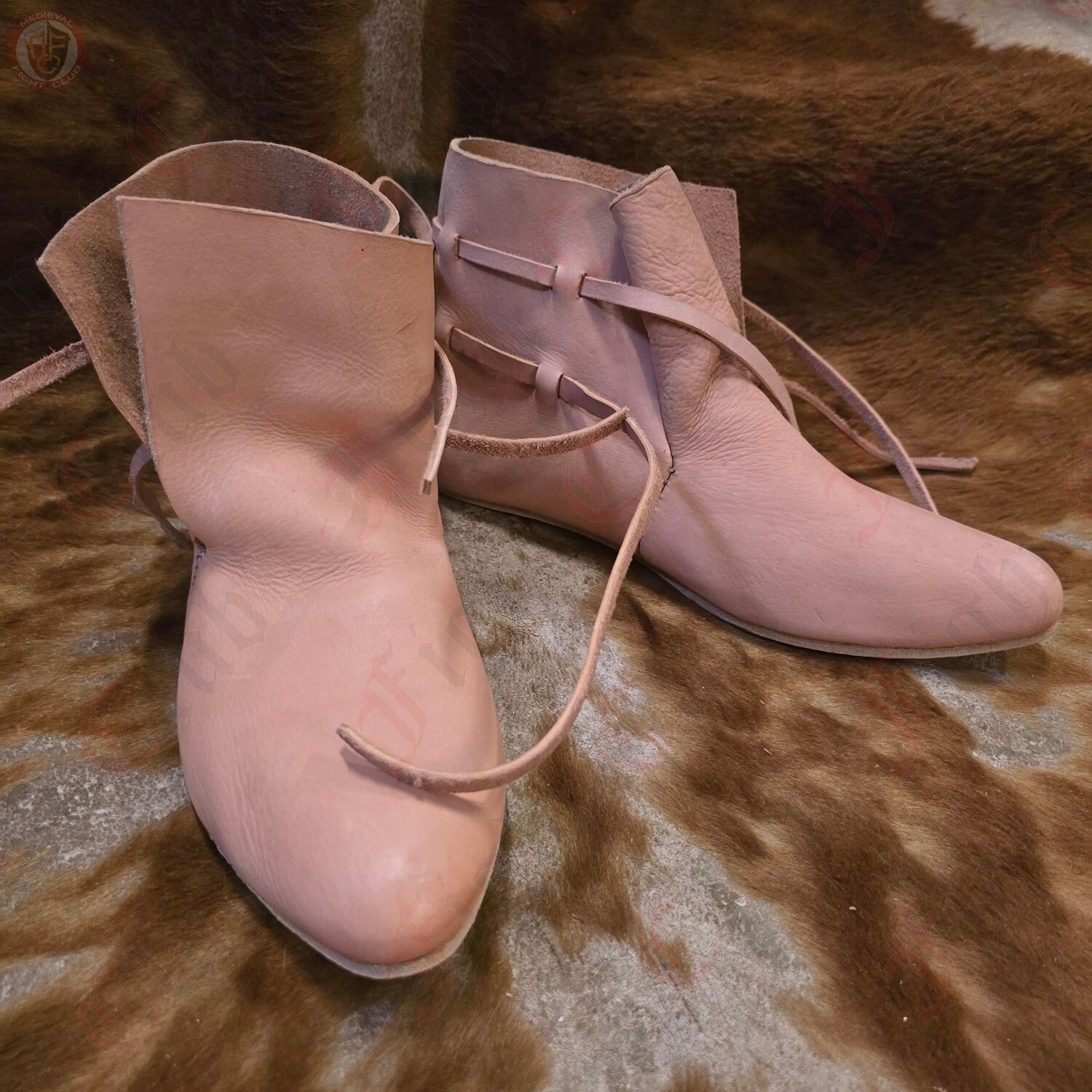This style of shoe was practical for everyday wear and well-suited to the lifestyles of both common folk and the nobility of the time. Perfect for reenactors, living history enthusiasts, or collectors of authentic medieval footwear, this Saxon shoe combines historical precision with quality craftsmanship.