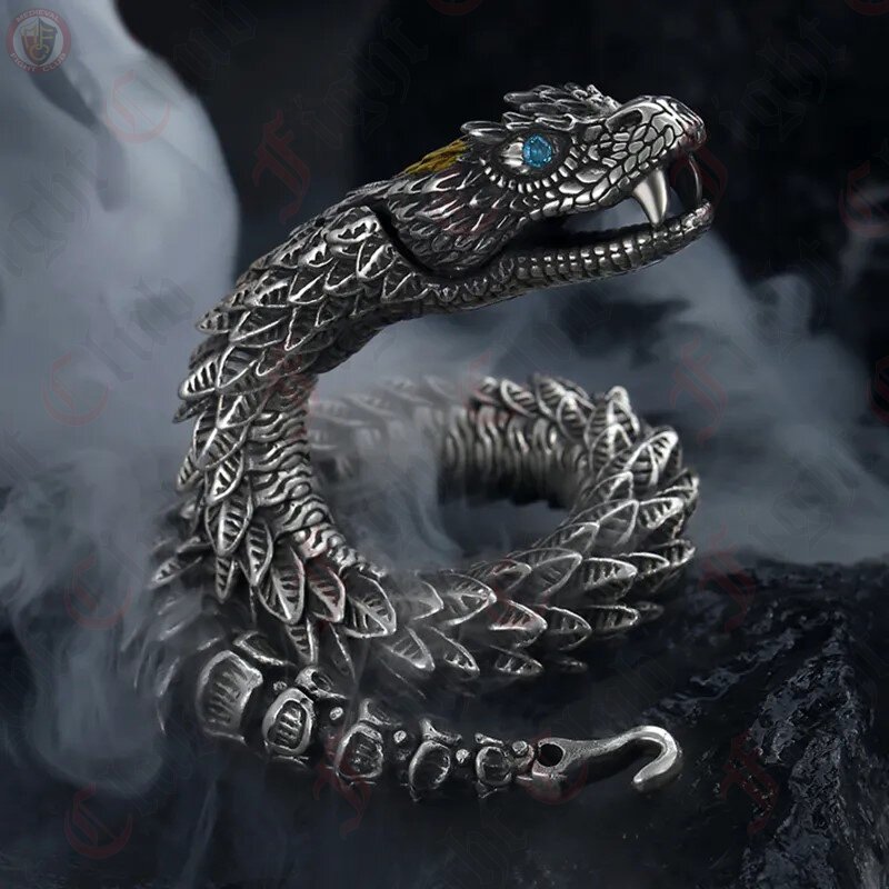 The bracelet showcases a masculine interpretation of a snake dragon, capturing the fluidity of movement and the strength of these revered creatures. Intricately designed scales and sinuous coils adorn the stainless steel centerpiece, making a bold and captivating statement.