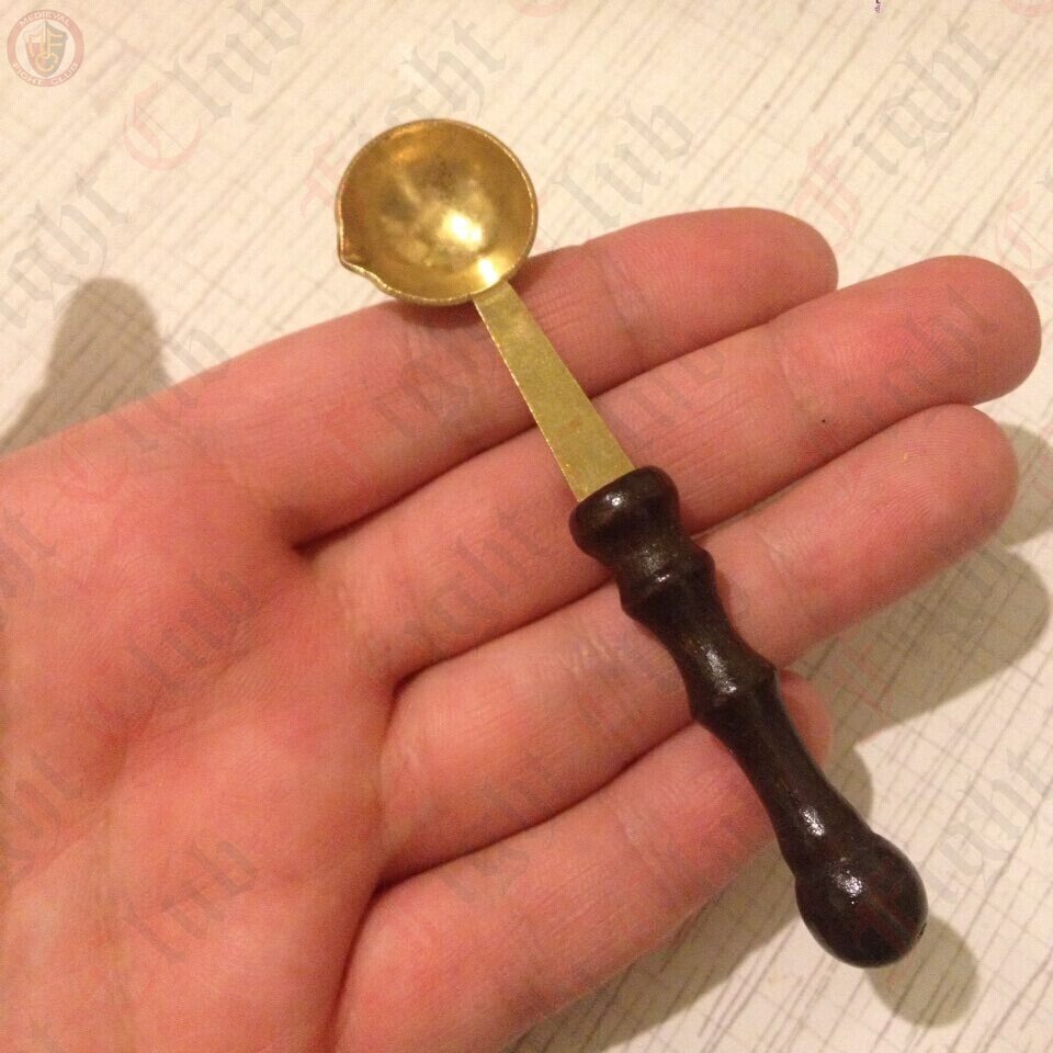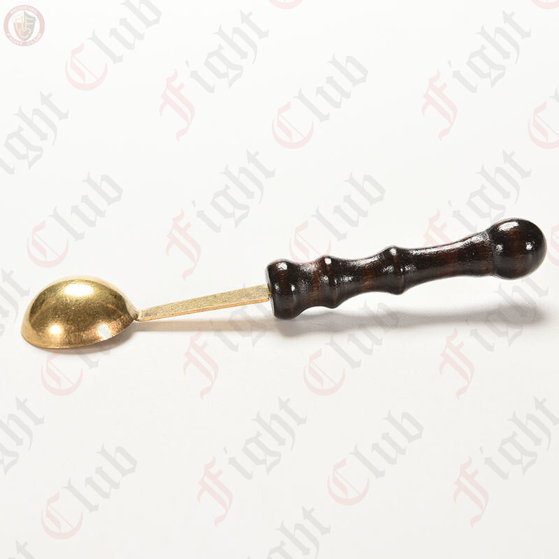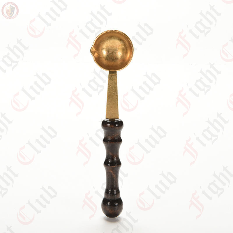 2. Place 3 or more wax beads, or a small amount of broken bits of wax sticks, into the spoon and hold over the heat until the wax just melts to honey like consistency.