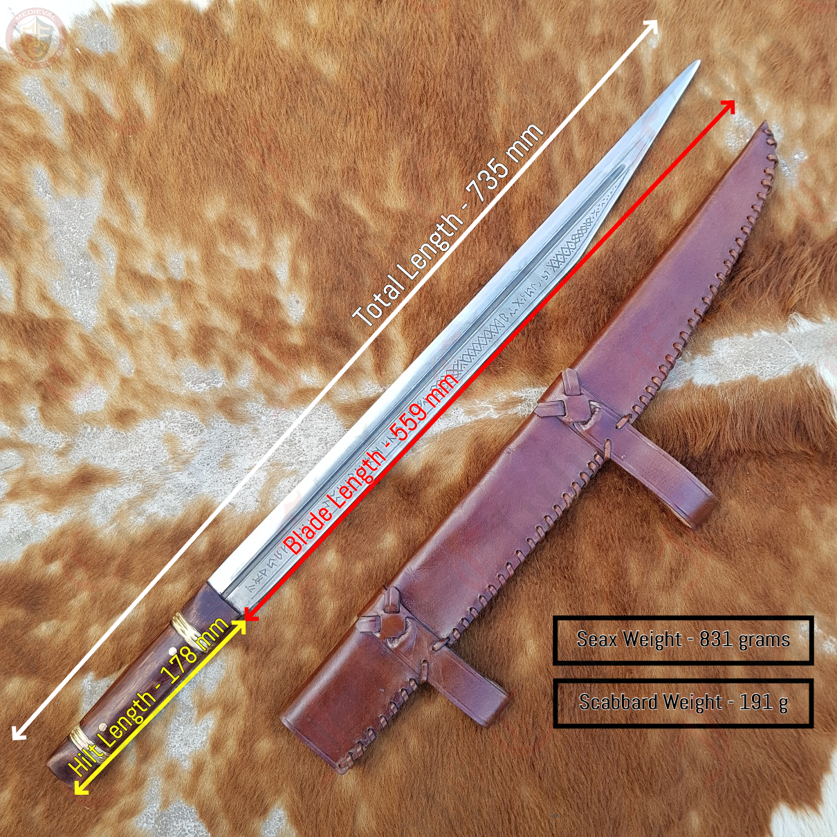 Blade Thickness: 1.5mm (needs grinding to be suitable for re-enactment)