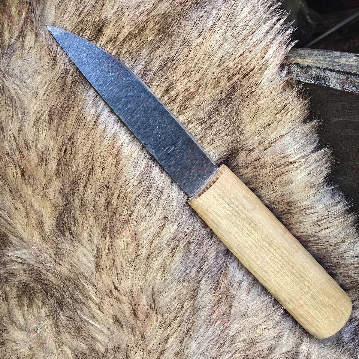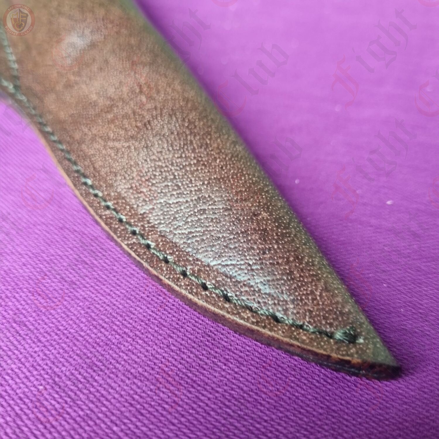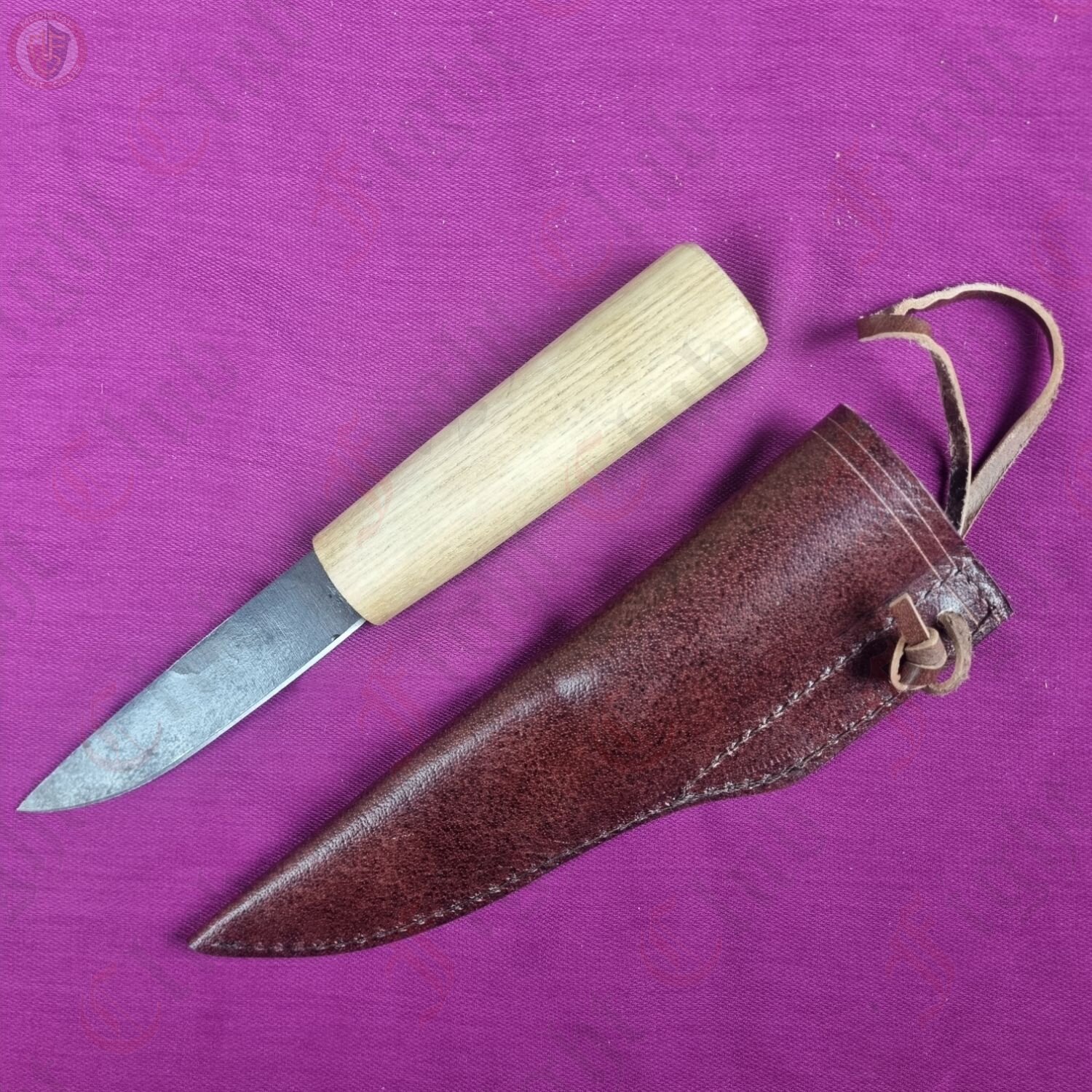 This particular seax is a standard, functional and rustic piece just ready to be picked up and used. With a sharp edge, this knife is practical and can be used just as it was a thousand years ago. It features a full tang, high carbon steel blade fitted to a sanded wooden hilt. The hilt features no decorations - letting you etch, burn or add to the blank slate as you see fit. Or, leave it blank and let the utility of the seax speak for itself. The knife also comes with a fitted leather scabbard inside which the seax sits securely, and features a leather loop for attaching to your belt.