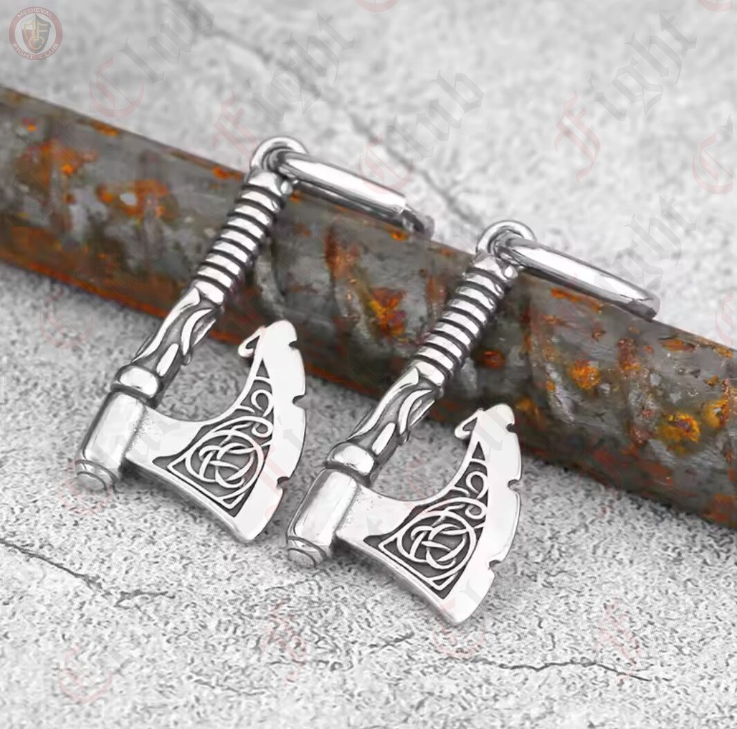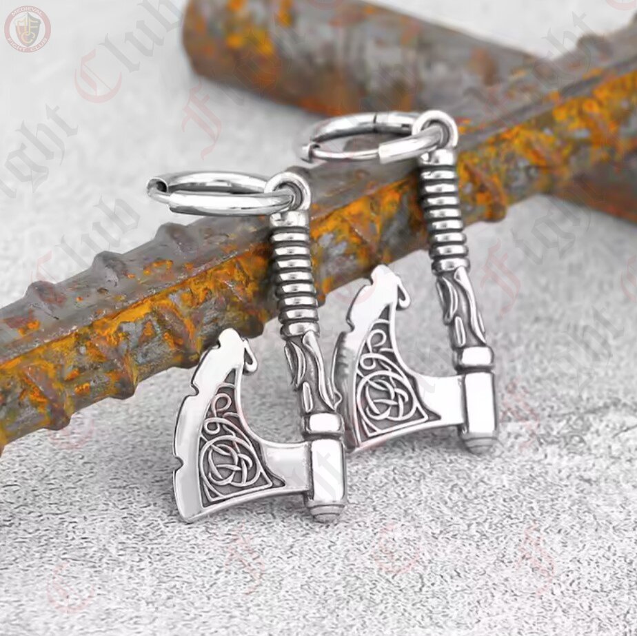 Strike with the spirit of the North. Skjoldrfang—Old Norse for "shield-catcher"—pays tribute to the fierce elegance of Viking warriors. These intricately detailed axe earrings channel the raw power of battle-forged steel and the honor of shield walls. Lightweight yet commanding, they’re the perfect fusion of myth, metal, and modern edge. Whether you're raiding a festival or standing your ground in daily life, Skjoldrfang ensures your warrior spirit never goes unnoticed.
