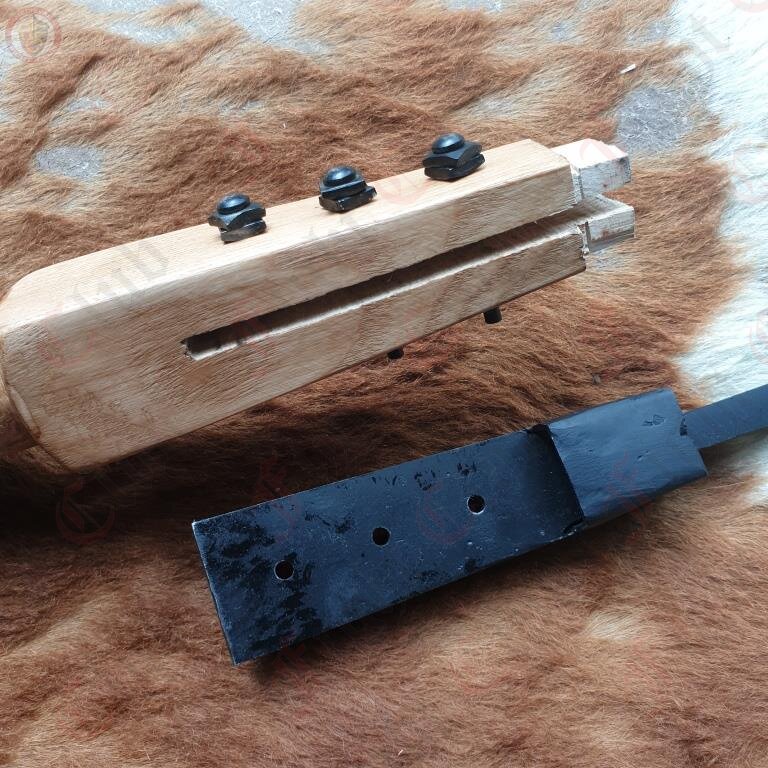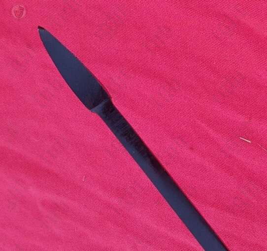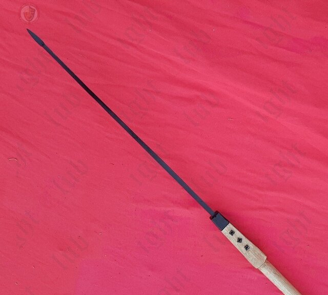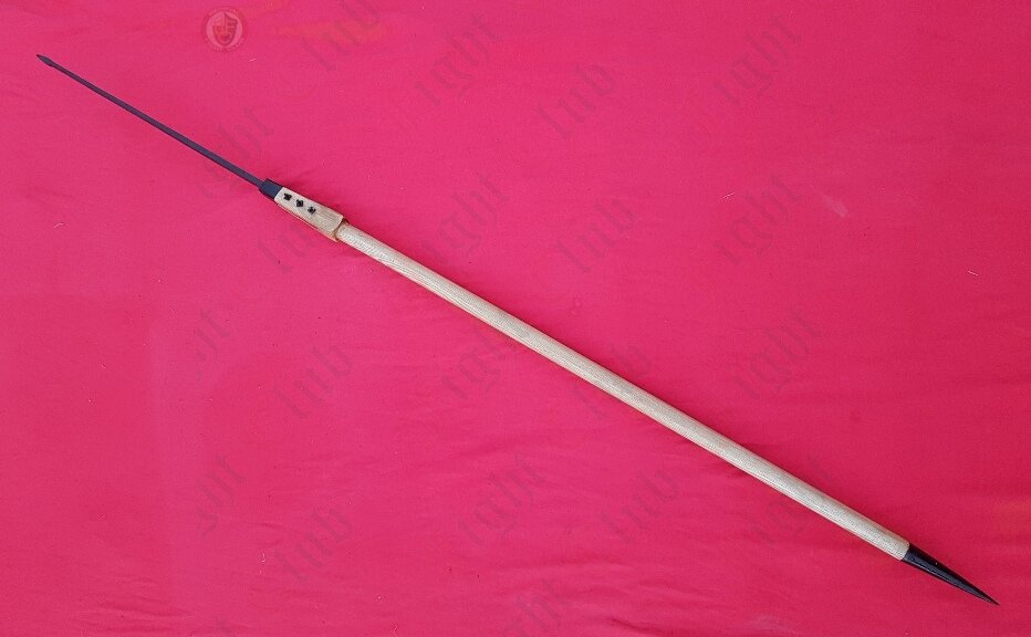 It was generally about 2 metres long overall, consisting of an iron shank about 7 millimetres in diameter and 60 centimetres long with pyramidal head. The shank was joined to the wooded shaft by either a socket or a flat tang and was usually made with softer iron.