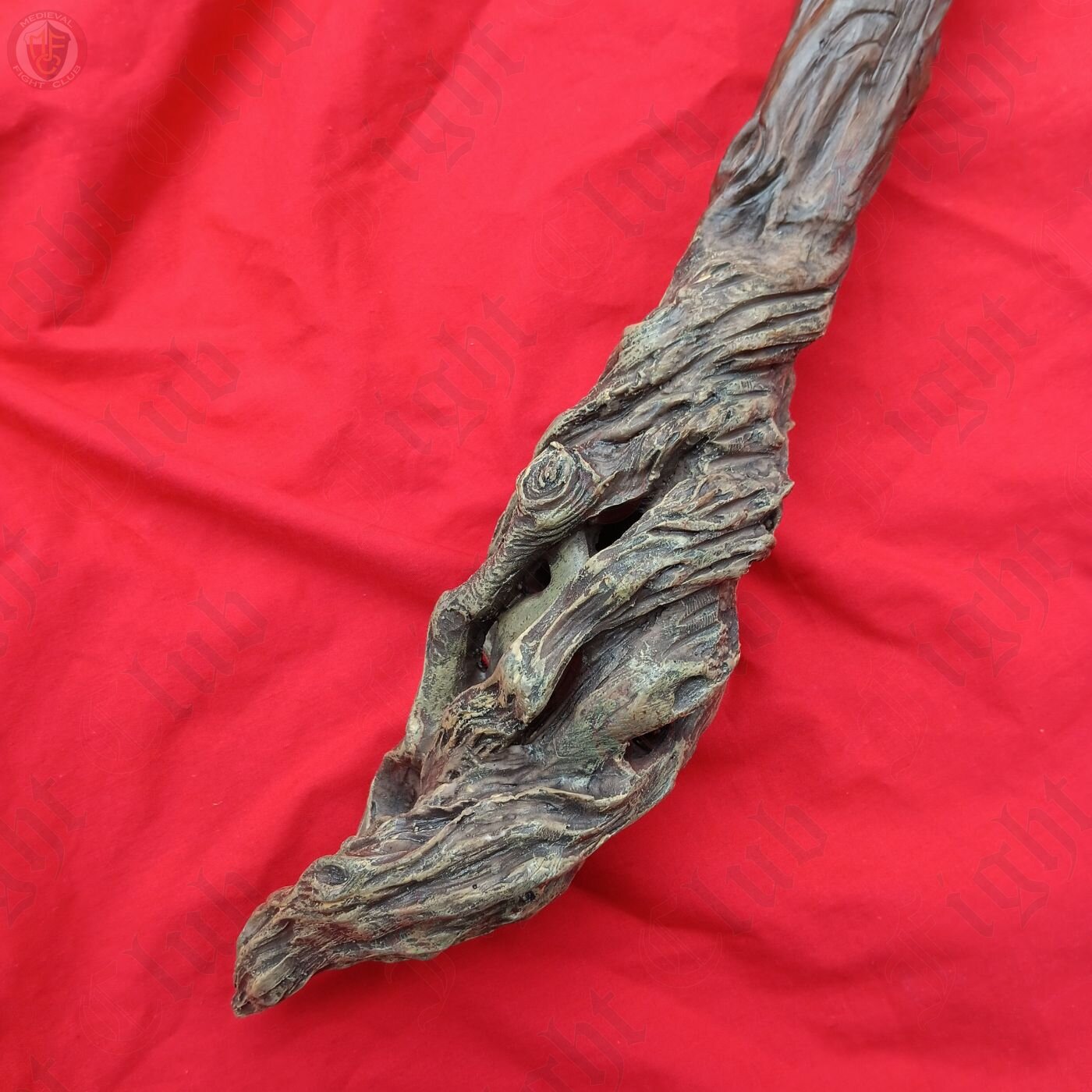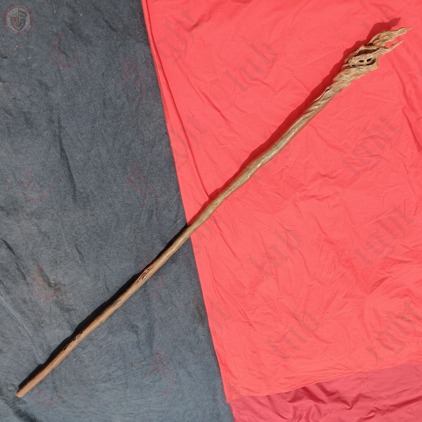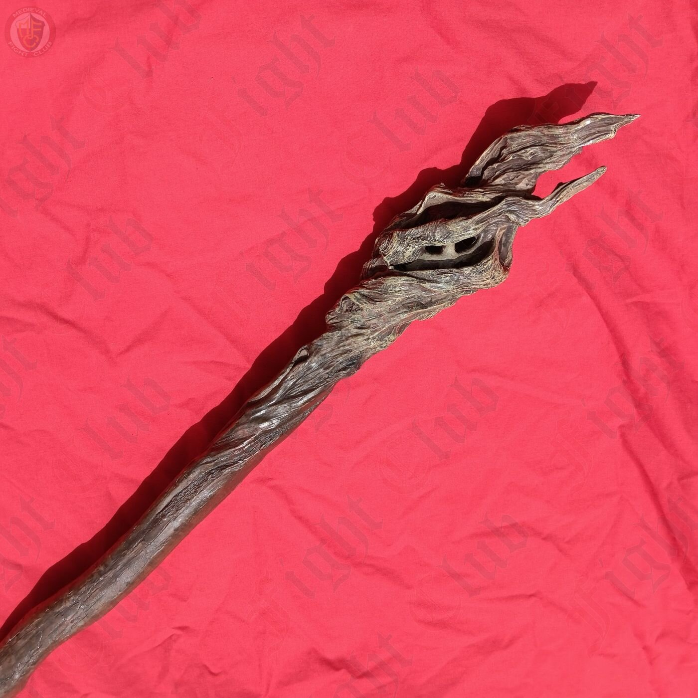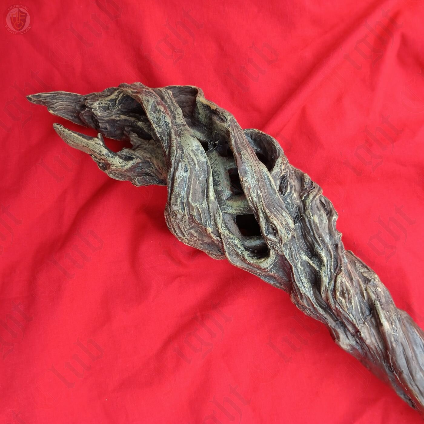 A replica of the gnarled wooden staff used by the wizard Gandalf the Grey throughout The Hobbit and The Fellowship of the Ring. A wizard's staff was their primary tool, power conduit, and strategic weapon of the wizards, and served as a symbol of their power or rank.