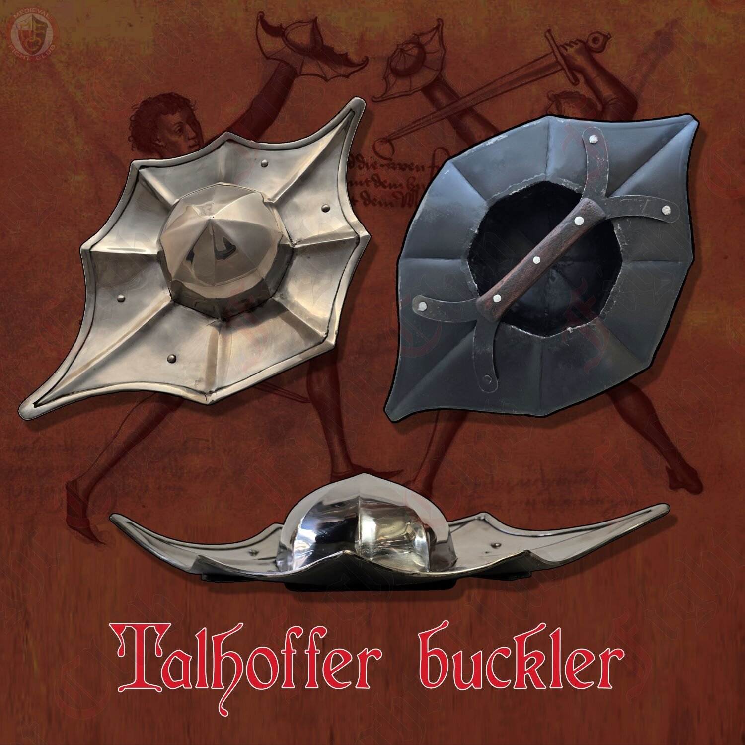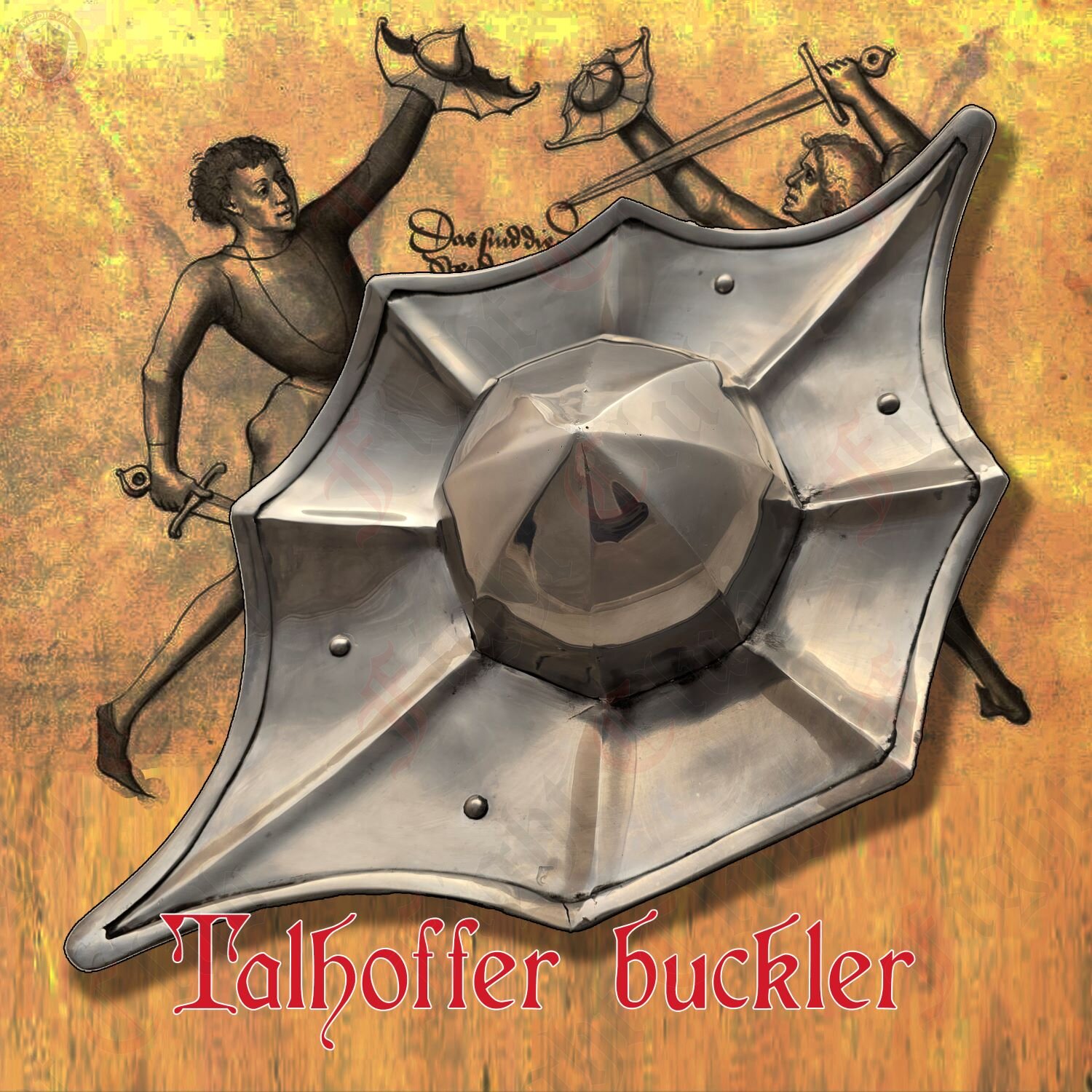 This shield is truly a work of art and a fully functioning steel buckler for HEMA, re-enactment, and HMB combat. If the great master Talhoffer liked it, then you certainly will!