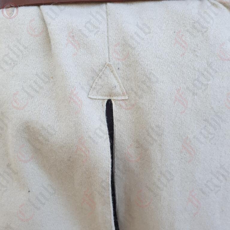 This surcoat in particular is one of the Templar Knights. In classic white, with the Crusader's red cross sitting prominently on the breast, there's no mistaking the wearer as anything but Templar. Made from wool, but lined with linen, this surcoat will keep your warm without the annoying itchiness of wool on skin. It is of the classic four flap style: slits around the thighs to allow for freedom of movement and horse accessibility.