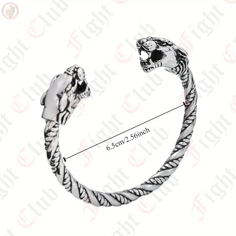 This bracelet has been exquisitely cast and features two lion heads adorning each end.