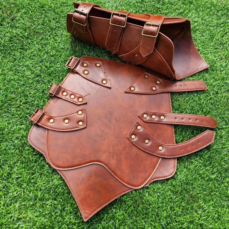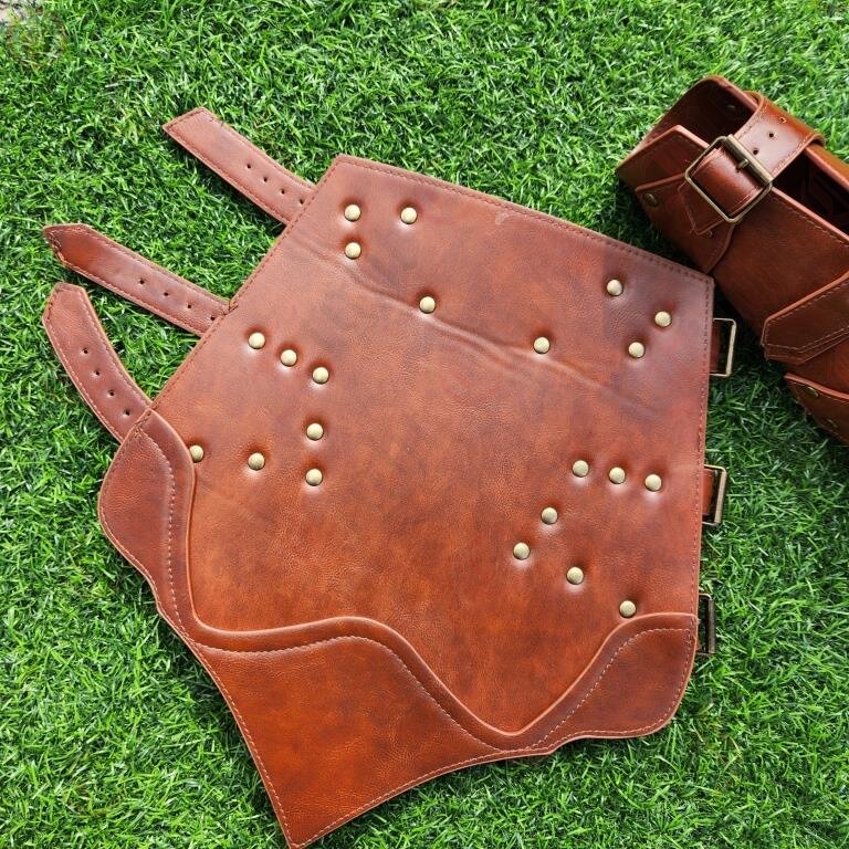 This armour piece is great on its own, or as a complement to extra body armours, leather or otherwise.
