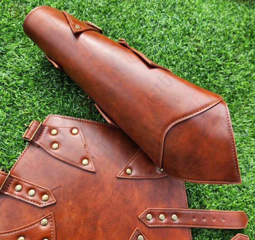 This faux leather vambrace is perfect for the warriors that require arm protection, but don't feel like weighing down their arms with bulky steel plate. This large arm guard extends to cover from wrist to elbow.