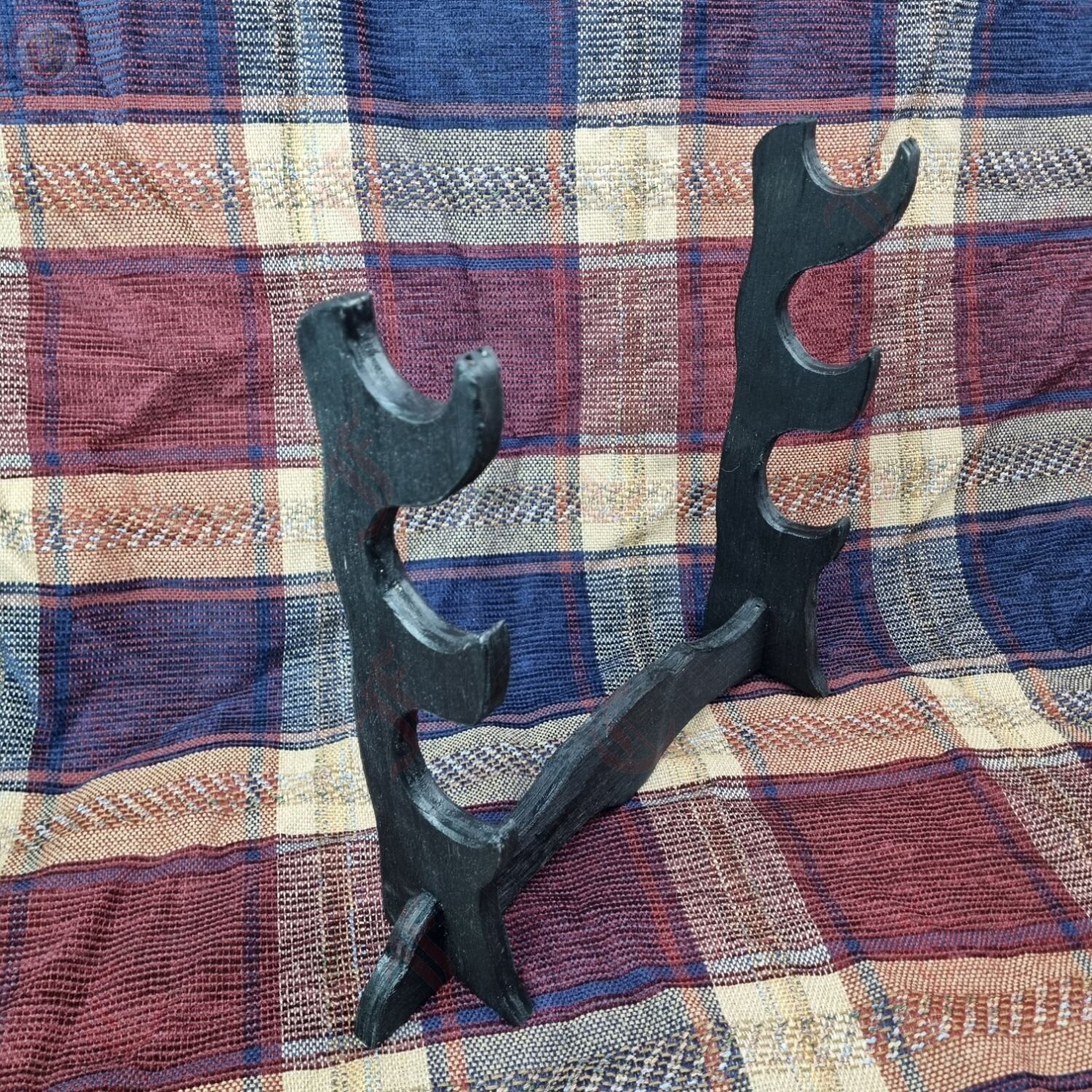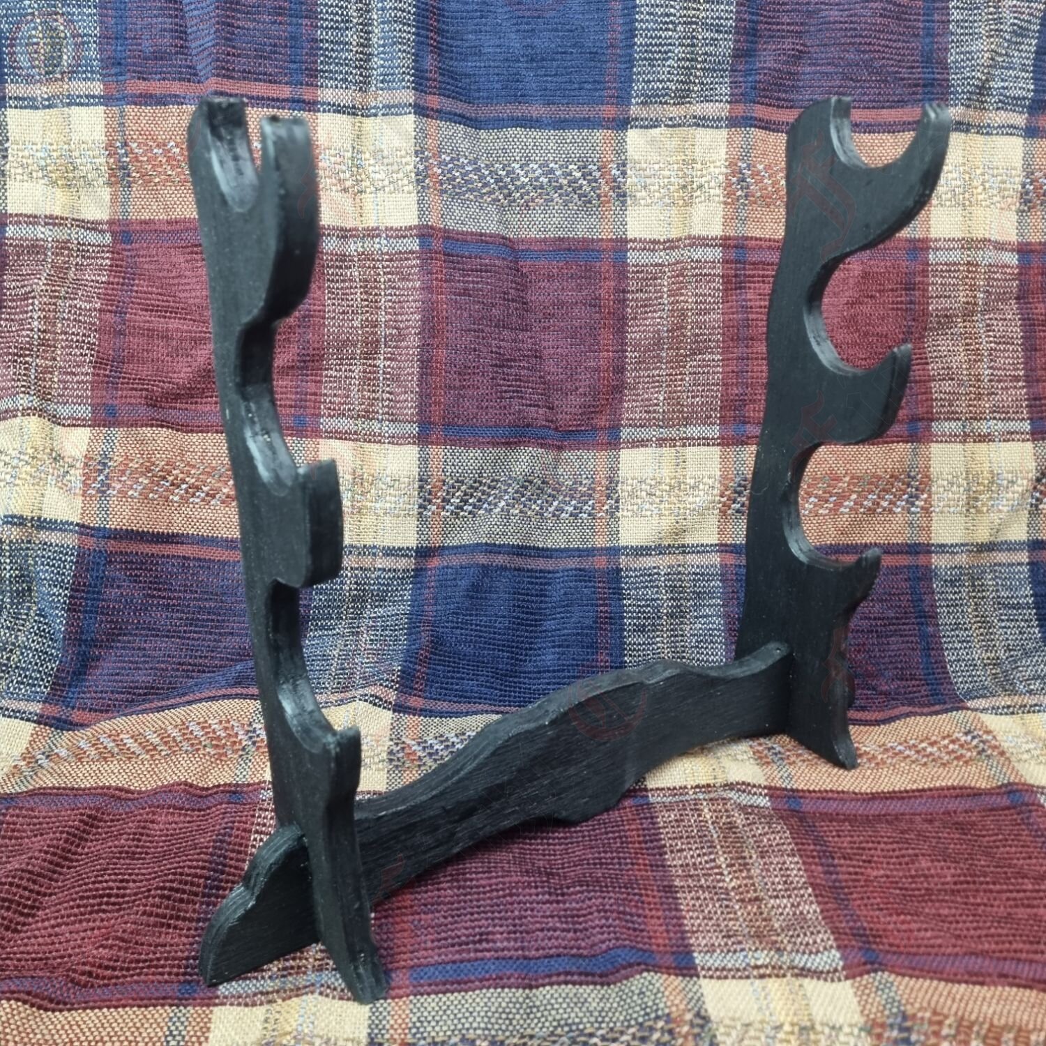 A display stand for your swords and daggers in a simple but sleek design. Capable of showcasing up to three items at once.